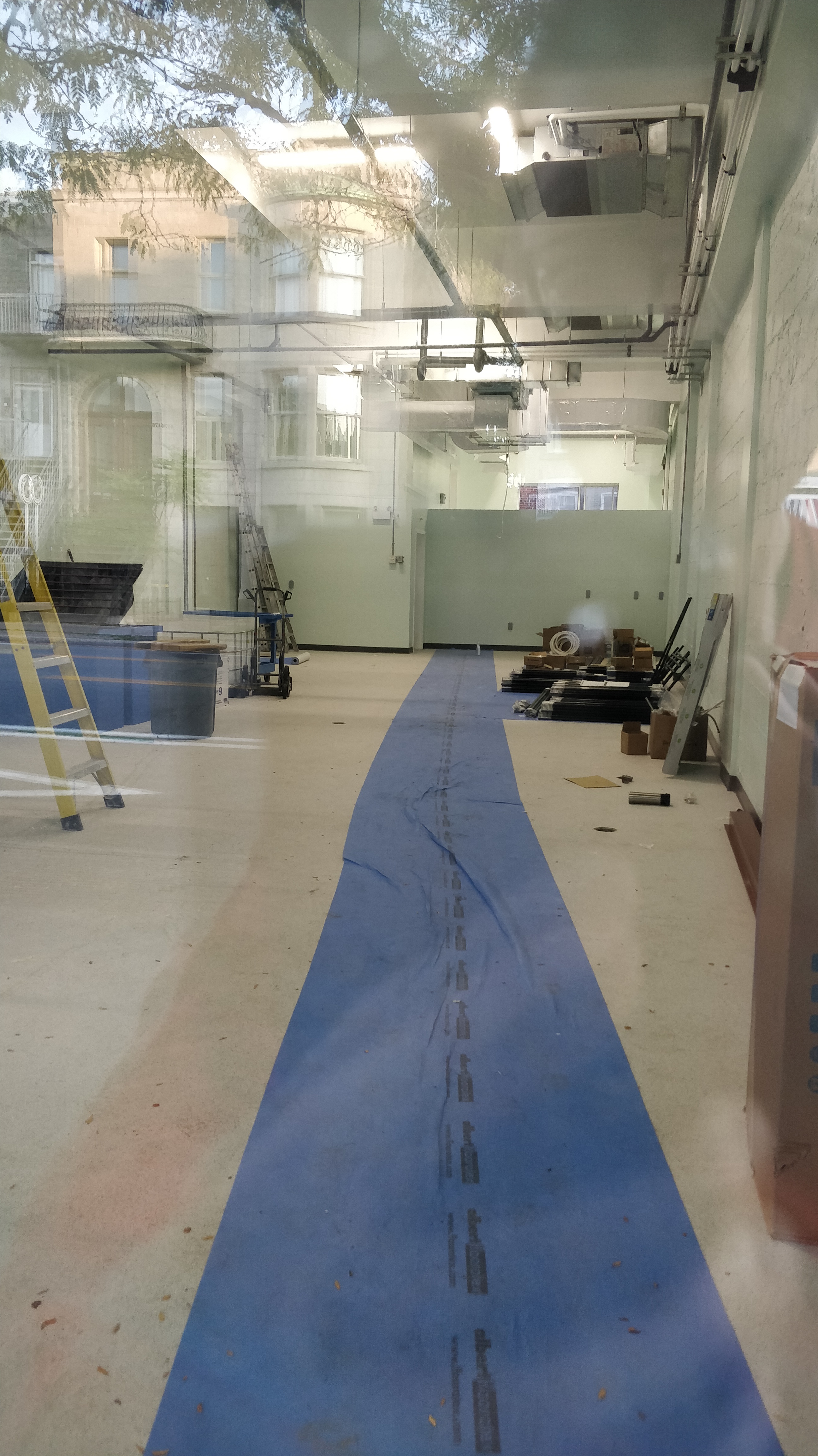 On peut voir un peu les travaux à l’intérieur de l’édifice nord, et tant qu’à y être, le voisin au nord est aussi en grosse rénovation (même propriétaire, je crois, et l’entrepreneur allait visiblement d’un à l’autre)