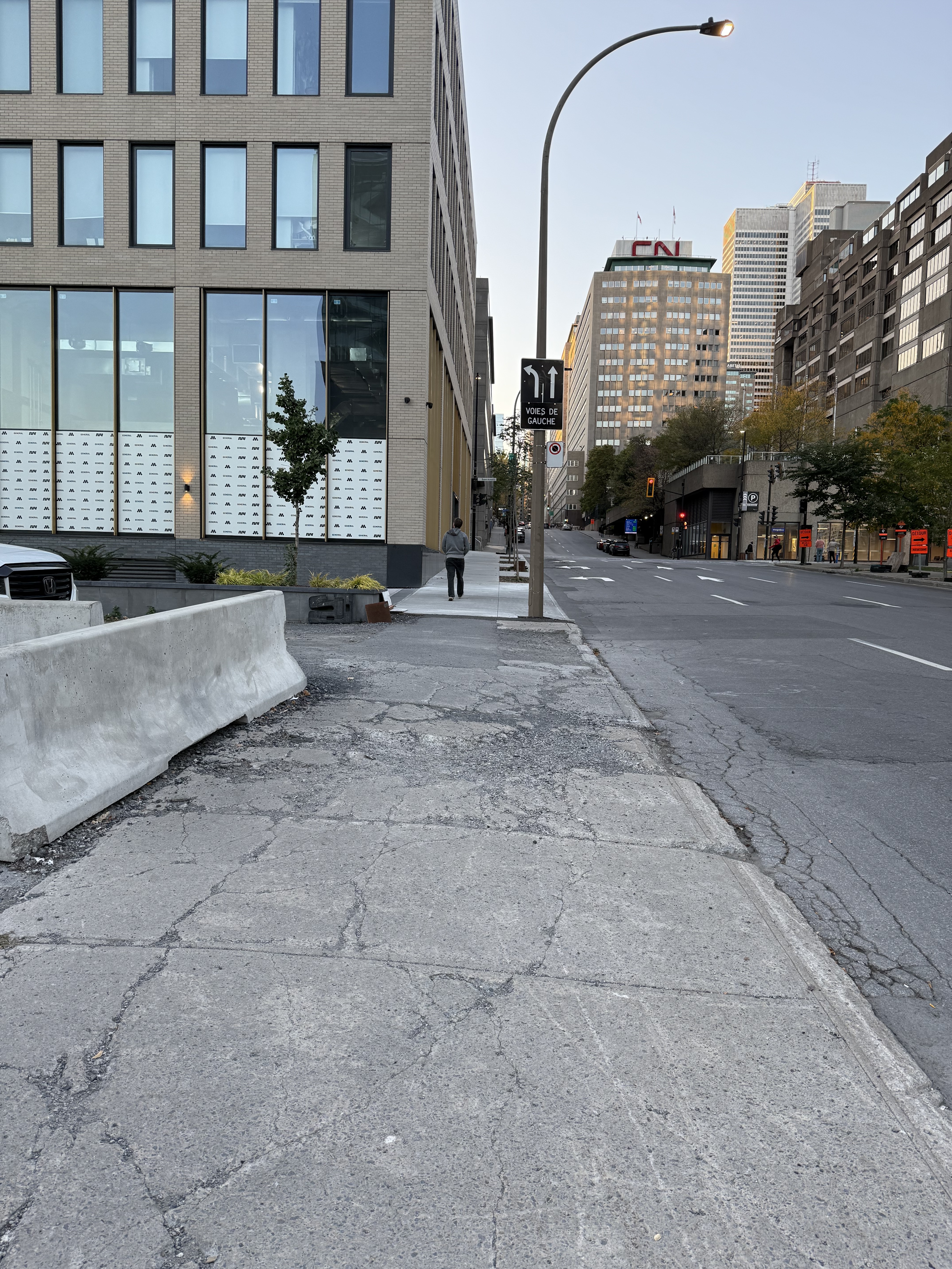Les vrais trottoirs arrivent plus vite ces temps-ci à côté des nouveaux immeubles.