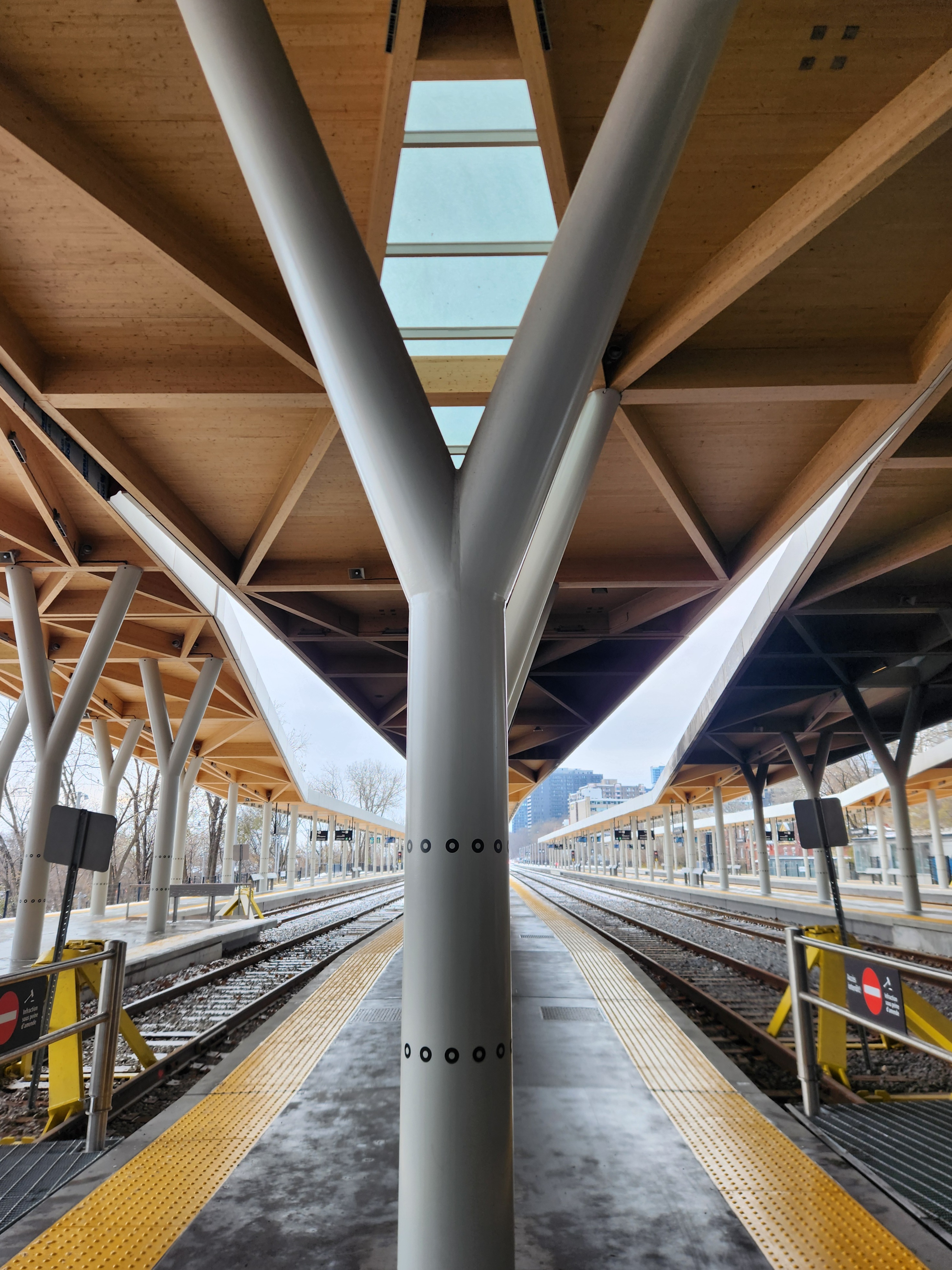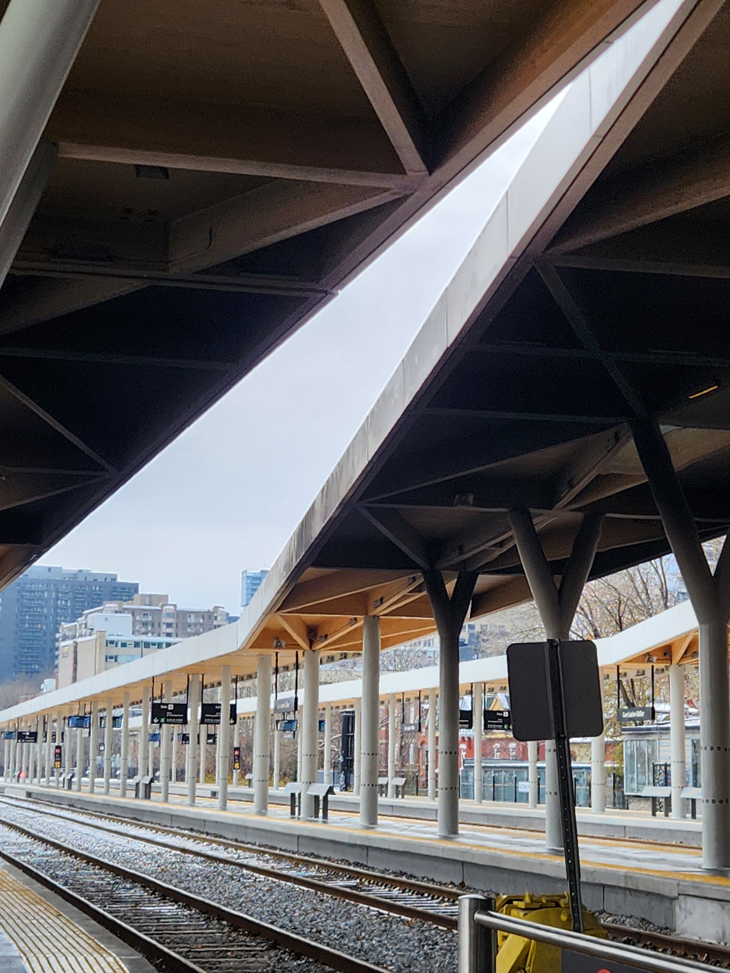 La suie sur plusieurs marquises neuves est toujours présente, et le noirci est assez frappant, lorsque comparé à la marquise propre à gauche. Ça fait déjà plusieurs mois que le problème est connu, je me demande si ils ont un plan pour nettoyer/corriger ça? En l’état, c’est plutôt déplorable.