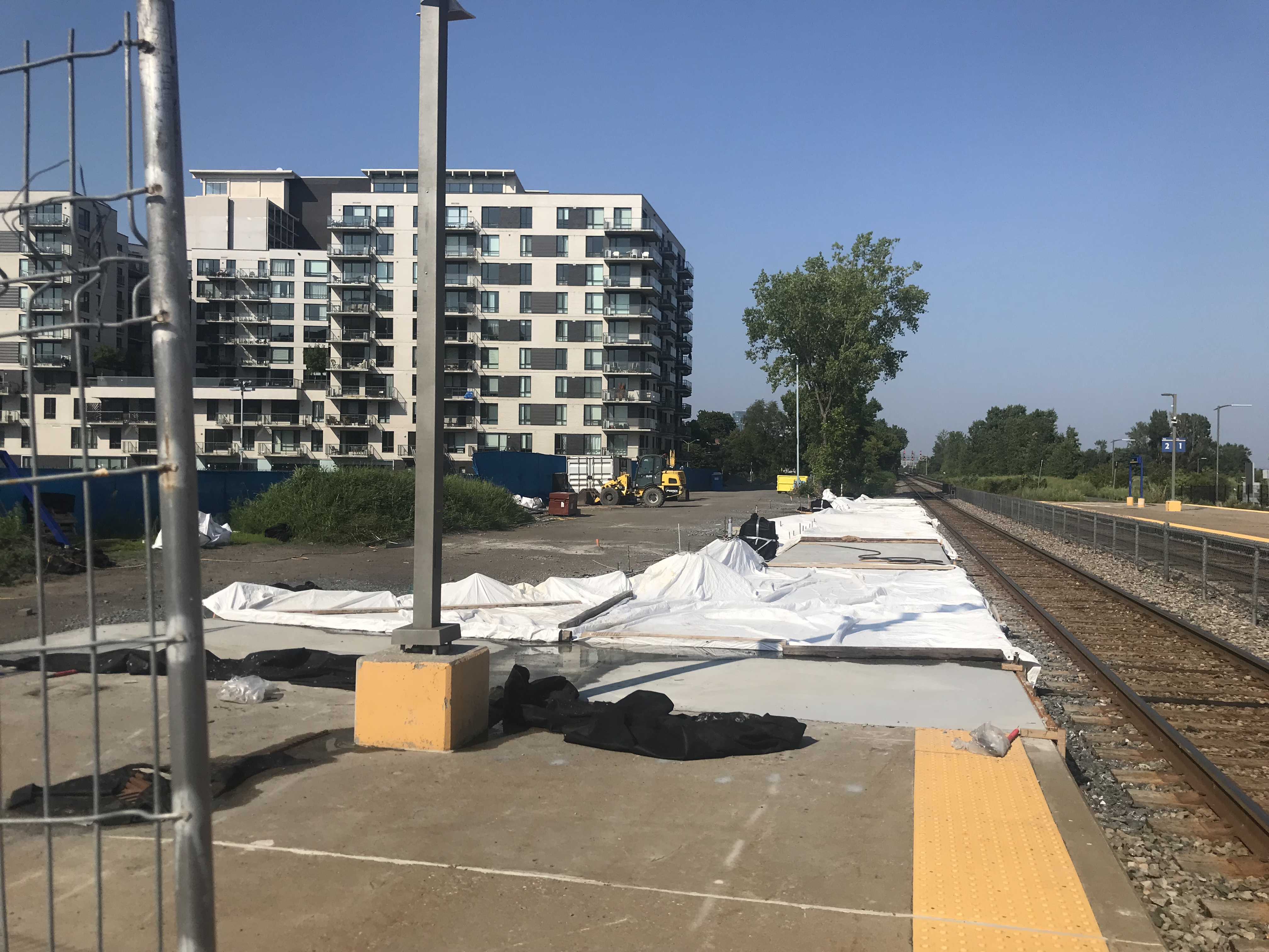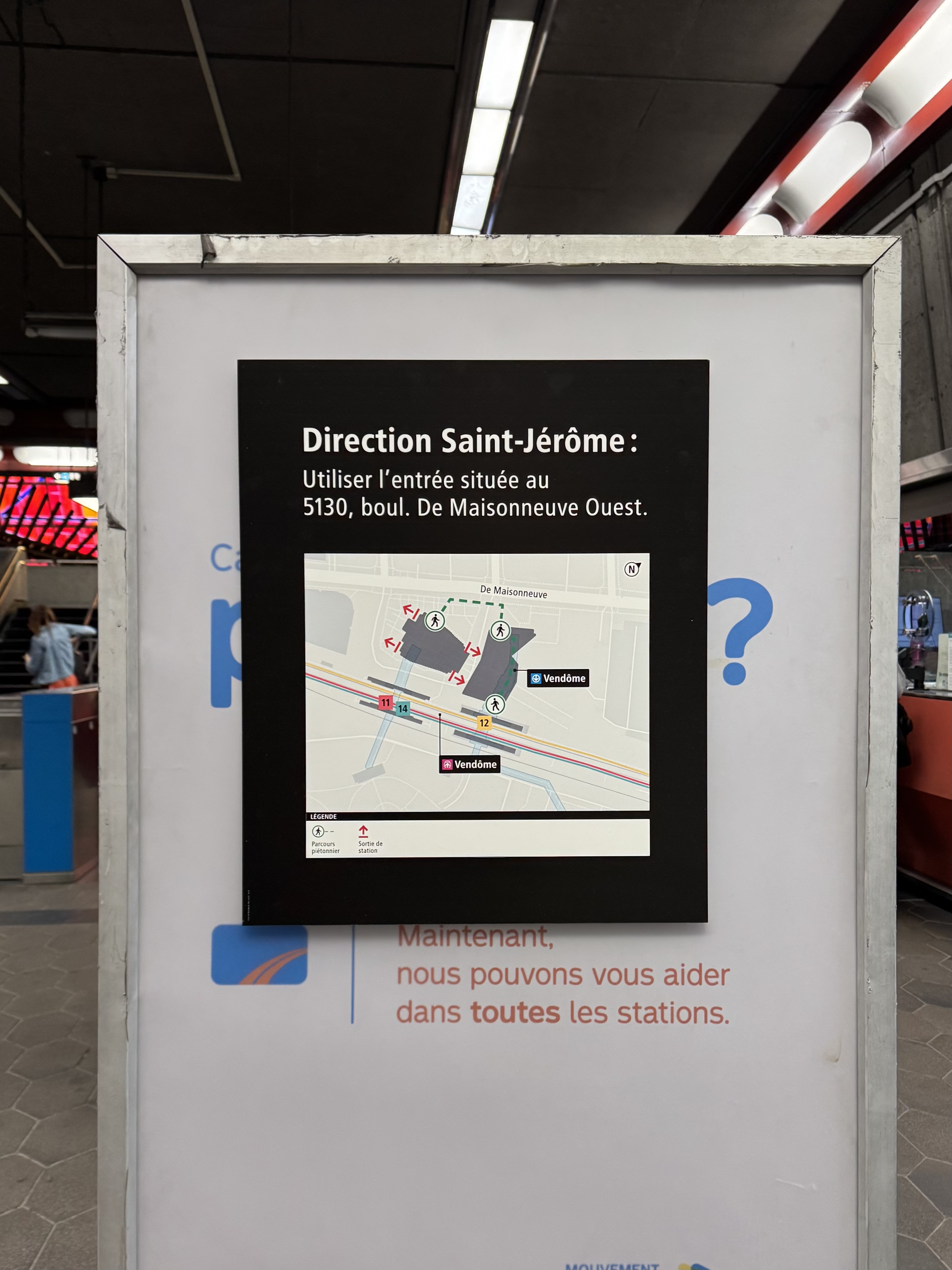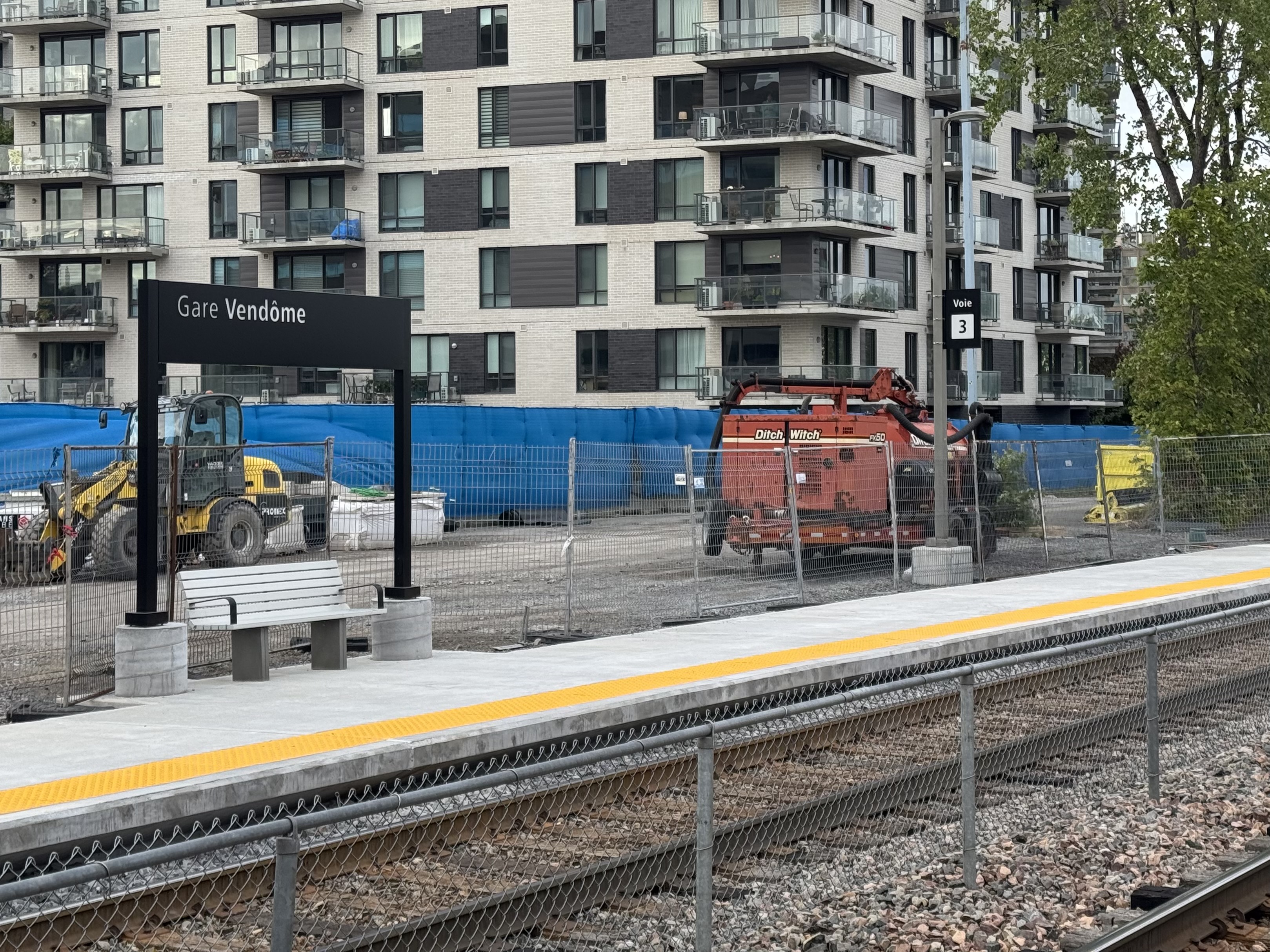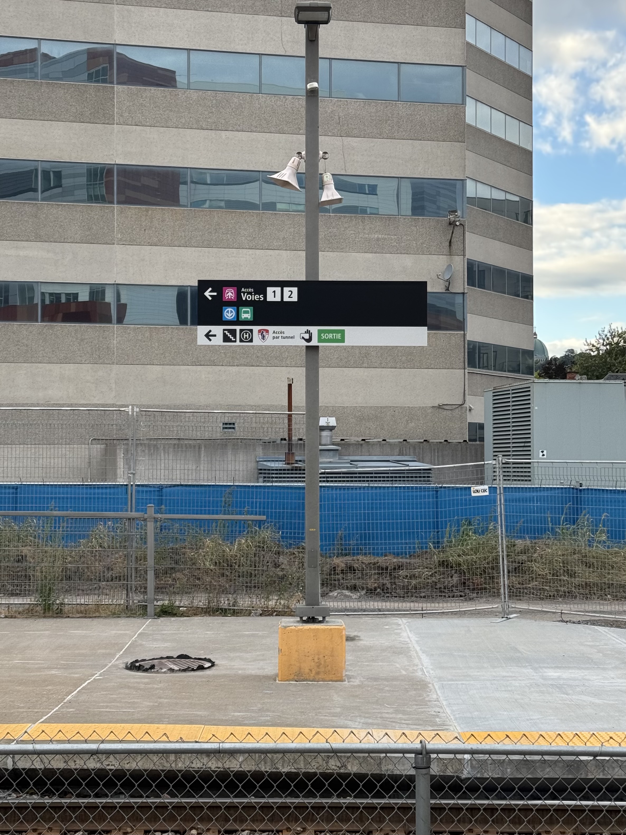 Le démontage des anciennes installations progresse. Il y a une variété de panneaux indiquant le détour, mais pas dans le tunnel menant aux quais. Lorsque je suis descendu, quelqu’un m’a tout de suite demandé comment accéder à la voie 3. Puisqu’iel avait une passe mensuelle, je lui ai suggéré de passer plutôt par le quai du métro.