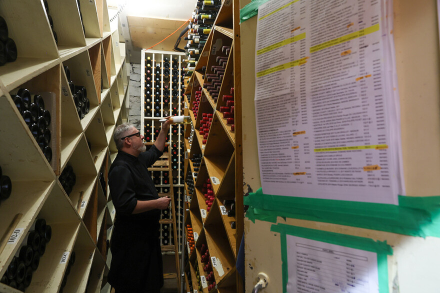 Le chef Jean-François Vachon nous montre la cave courante de LâExpress, qui ne contient quâune partie du trĂšs grand stock de vin de la maison.