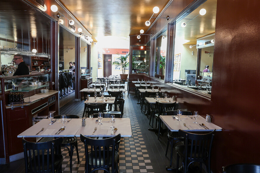 Quant Ă lâaccessibilitĂ© qui Ă©tait si chĂšre aux fondateurs, elle est toujours dâactualitĂ©, malgrĂ© la flambĂ©e des prix dâĂ peu prĂšs tout. Si on nâa pas les moyens (ou lâenvie) de se gĂąter avec entrĂ©e-plat-dessert et un grand cru de Bourgogne pigĂ© sur la carte des vins parallĂšle, on peut encore trĂšs bien commander un croque-monsieur avec frites ou une quiche pour 17,25 $ et un verre de vin Ă 7,75 $. Service public bien rendu !