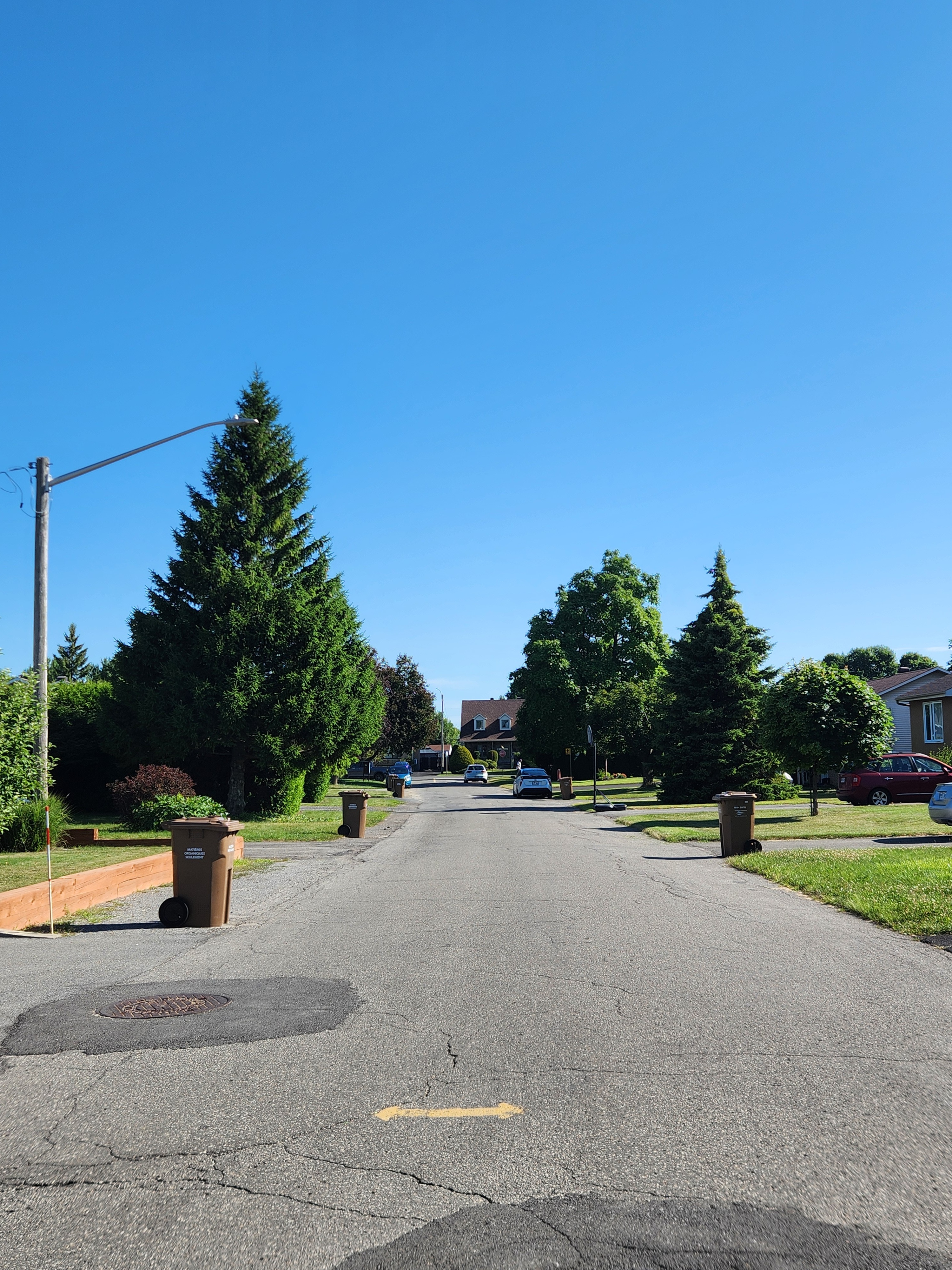 Ces photos m’apporte un questionnement. Pourquoi plusieurs quartiers ont des bordures de bétons en bord de rue? Des rue qui descendent directement sur le gazon comme sur ces photos, il me semble que ça permet de capter de l’eau pluviale. En plus des parcs éponges, pourquoi ne pas retirer ces bordures pour diminuer la quantité d’eau qui se retrouve dans le réseau dégoût?