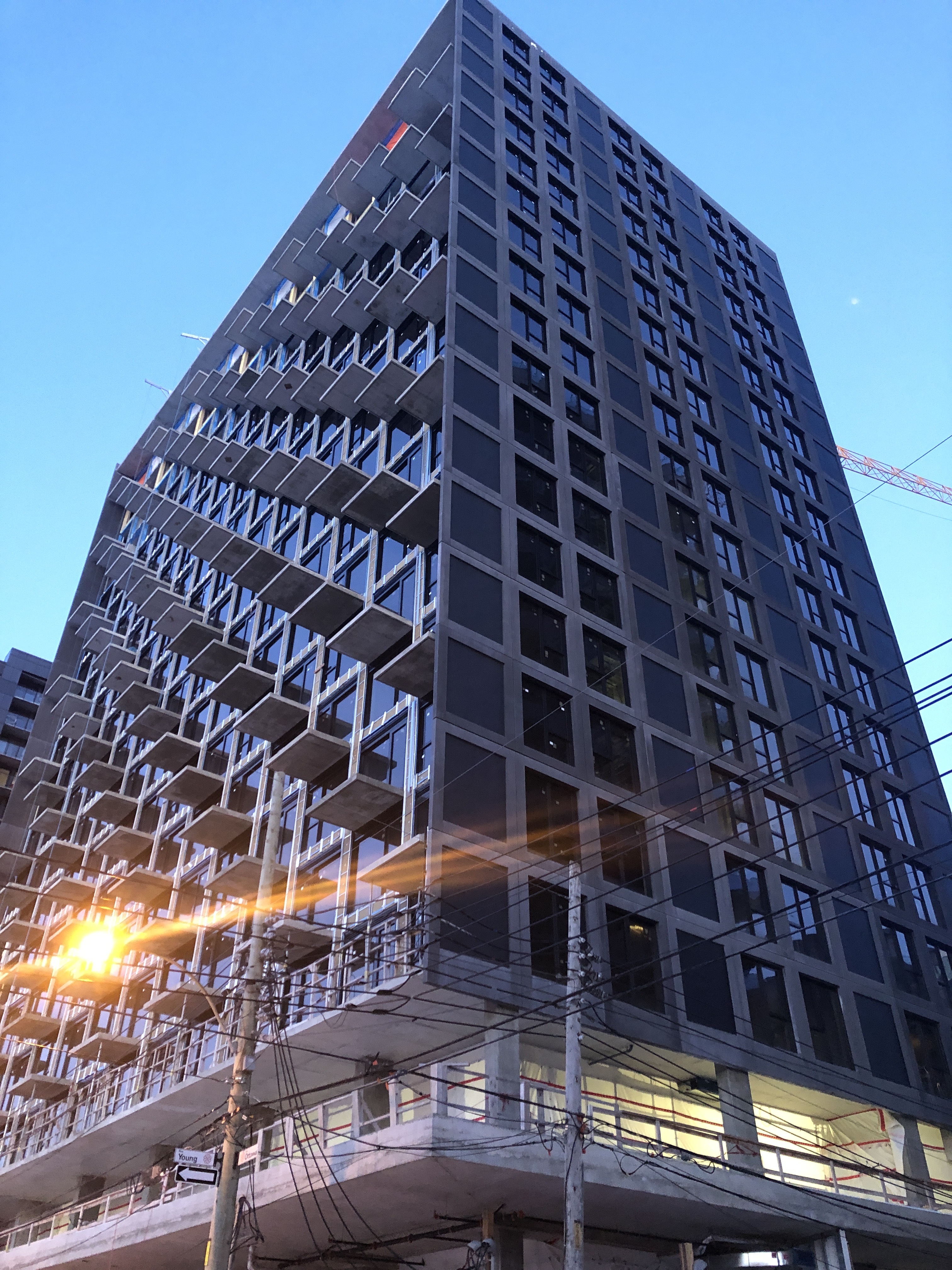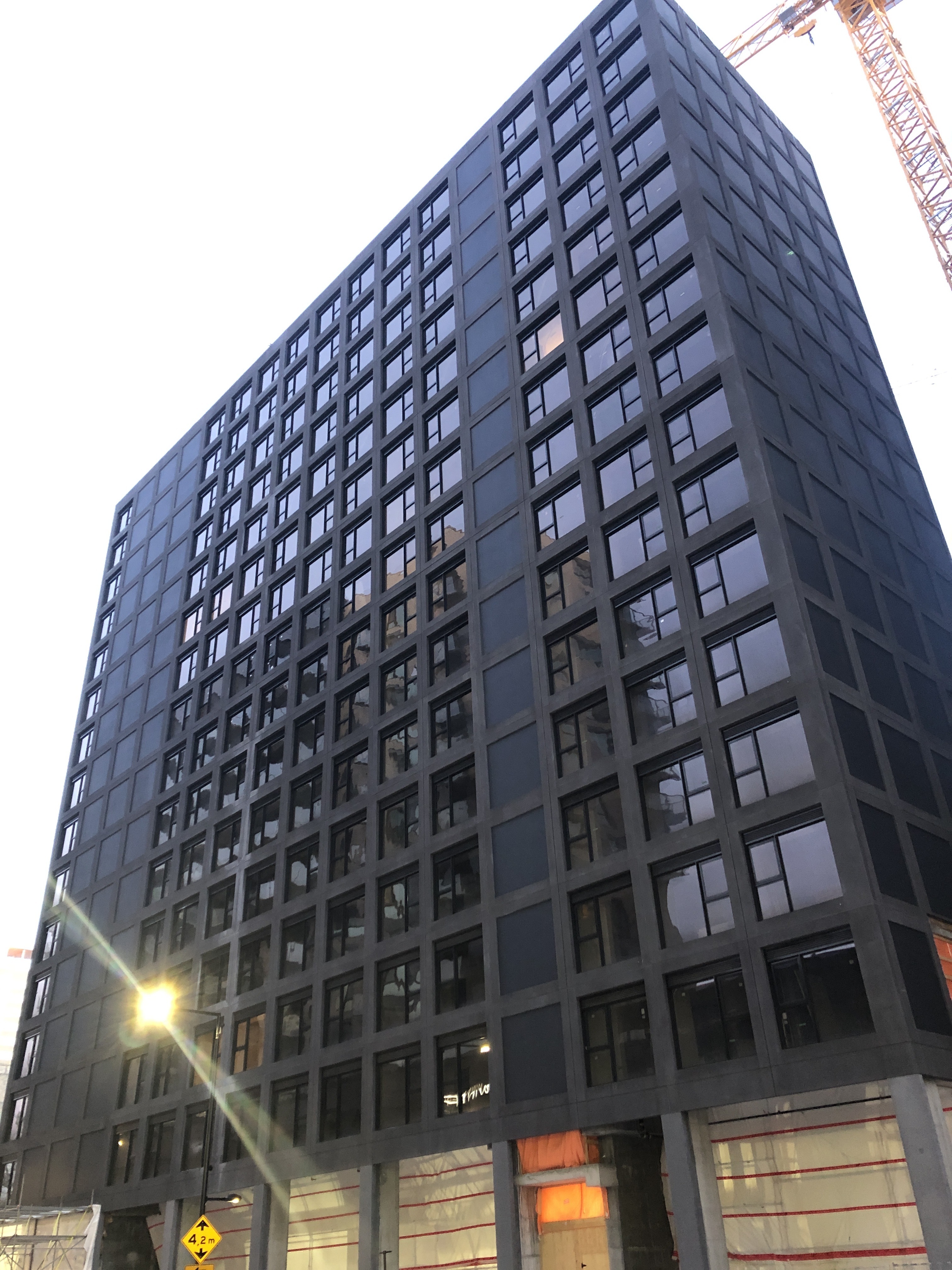 Je suis mitigé par rapport à ce projet, j’adore sa sobriété et son harmonie, ce qui est rare à Griffintown. Mais en même temps, sa volumétrie est massive et je trouve qu’il aurait pu être plus ambitieux.