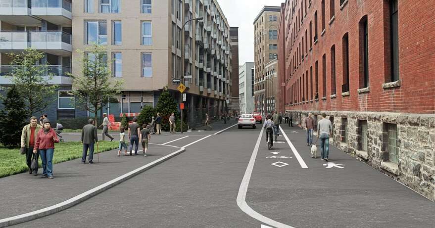 En plus de reconstruire les infrastructures souterraines, un travail qui s’avère nécessaire puisqu’elles datent de 1876, la Ville de Montréal révisera la configuration de la rue William. Les trottoirs seront élargis et une piste cyclable sera ajoutée.