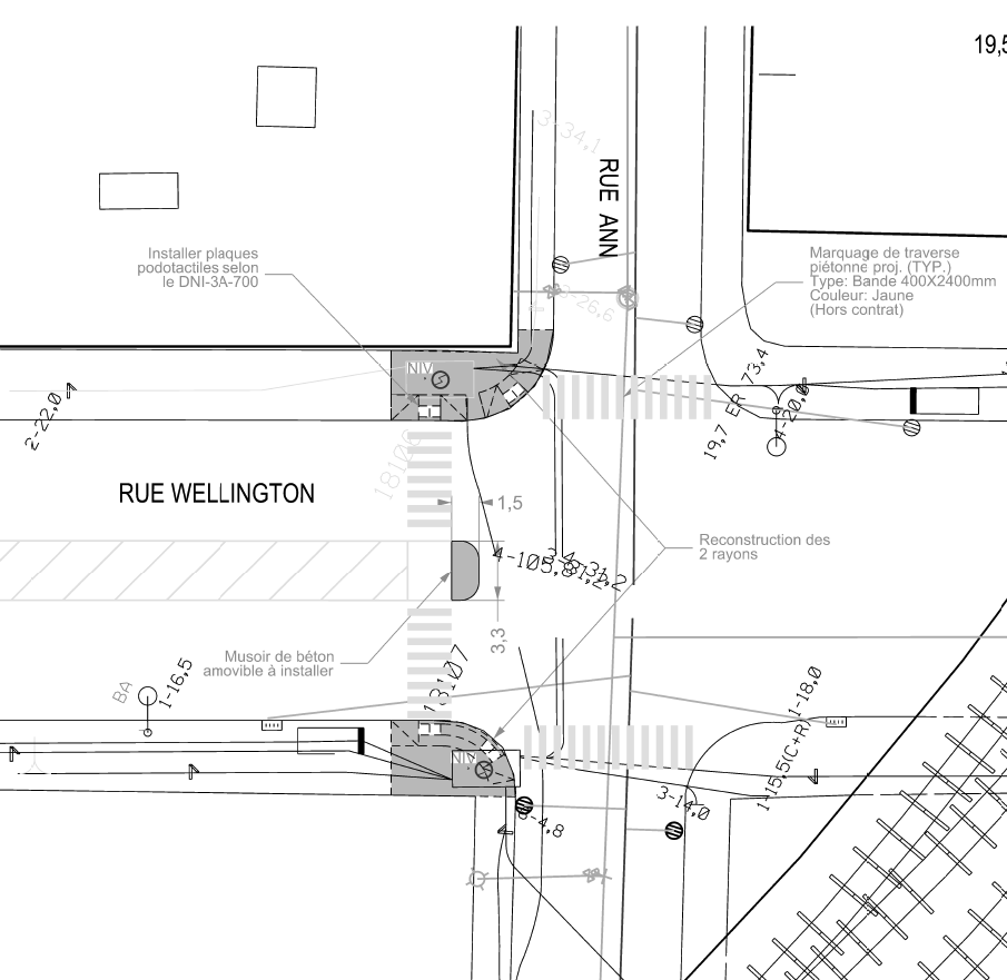 Afin d’améliorer la sécurité à l’intersection des rues Ann et Wellington et de faciliter la traversée des piétons, l’arrondissement du Sud-Ouest prévoit de corriger la situation par l’aménagement de l’intersection en incluant l’ajout d’une traverse piétonne protégée ainsi qu’une zone de refuge à mi-chemin.