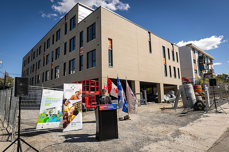 «[…] ces logements permettent aux personnes les plus vulnérables de retrouver une qualité de vie et une stabilité résidentielle», s’est réjoui le député fédéral d’Alfred-Pellan, Angelo Iacono, à l’occasion d’une visite du chantier complété à environ 80 %, le 19 septembre dernier.