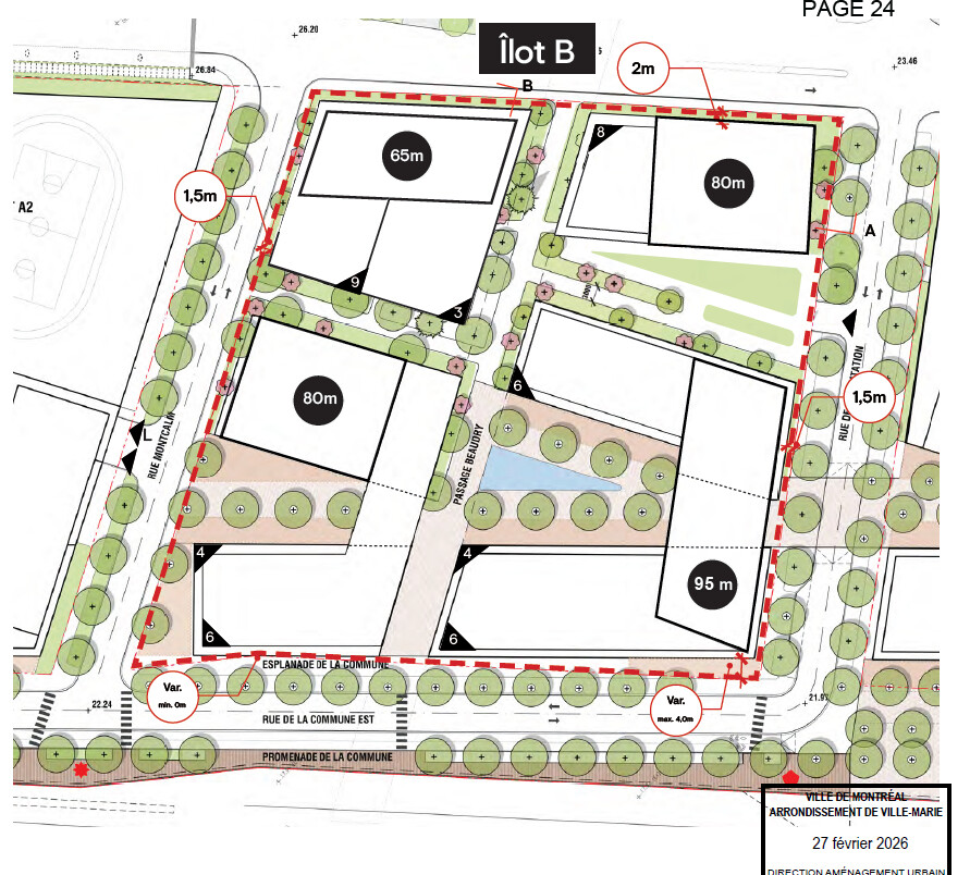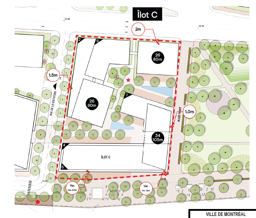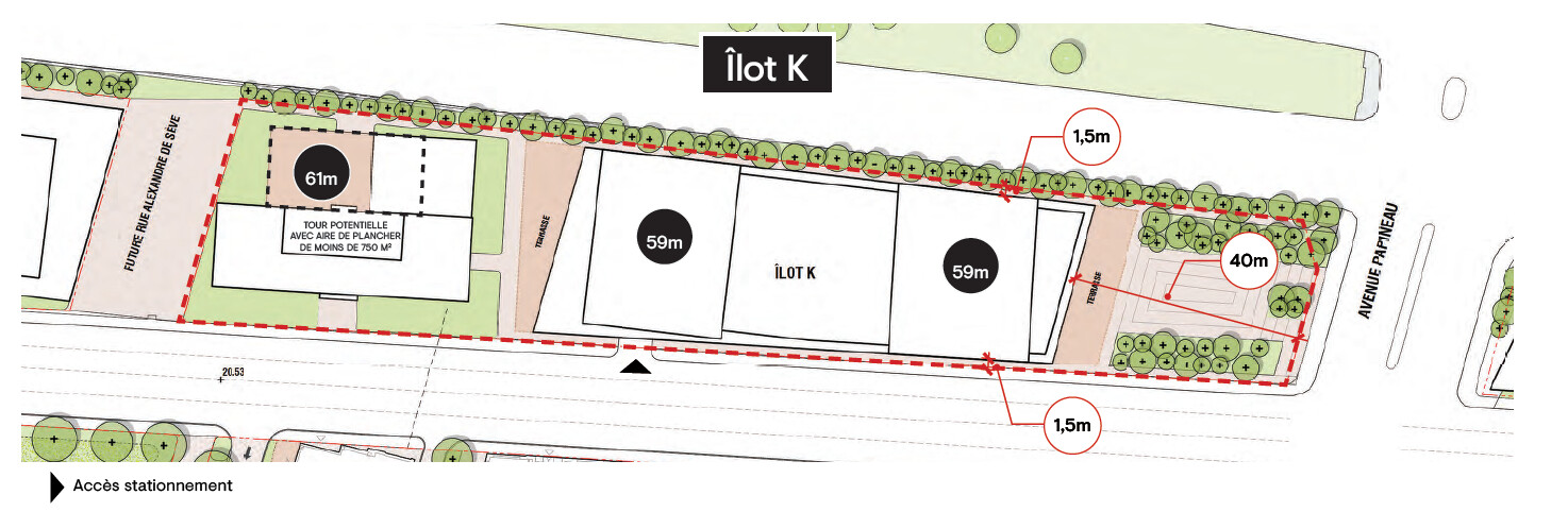 - L’usage de stationnement public intérieur est demandé pour que le stationnement souterrain, qui occupera une grande partie de l’îlot, et comprenant 642 cases puisse être accessible au public.