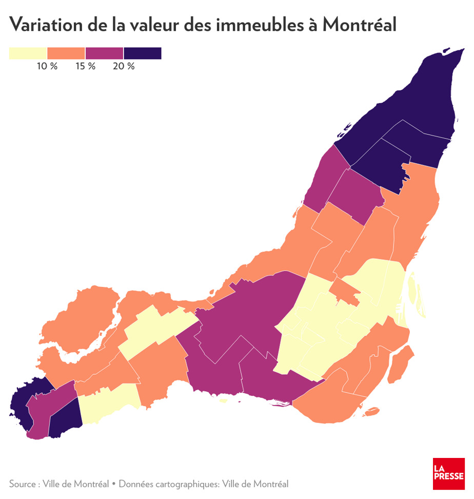 Most of the city’s boroughs showed increases between nine and 20 per cent, except for the downtown borough of Ville-Marie, which showed an increase of only 5.8 per cent.