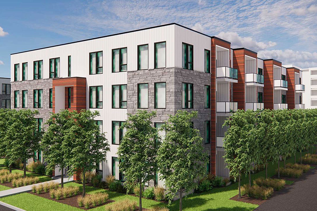 Projet locatif résidentiel comptant 3 bâtiments de 32 logements chacun et situé près de la gare Mirabel.