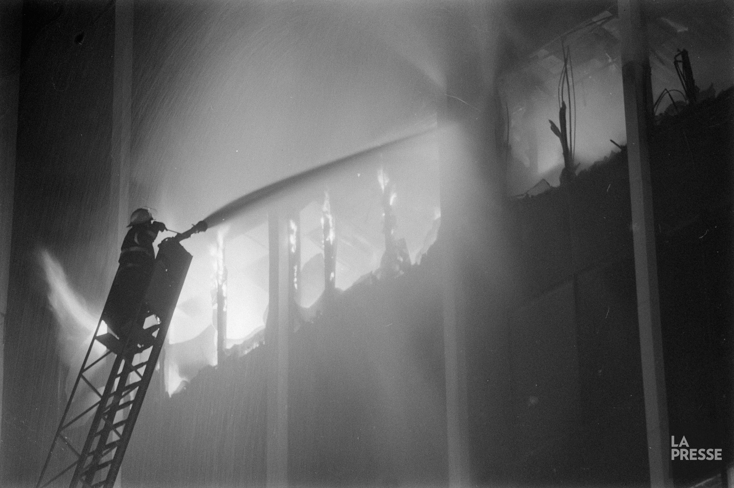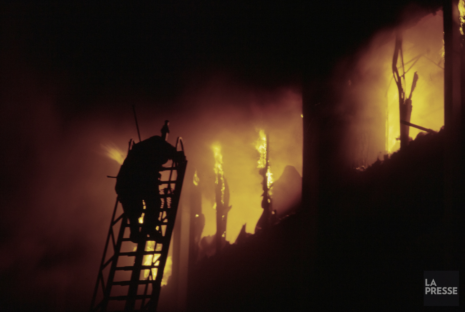 Lors du passage du Devoir mardi, une centaine de pompiers – soit une cinquantaine de moins qu’en plein milieu de la nuit – s’affairaient toujours à asperger d’eau le brasier qui s’était déclaré à 2 h 10, la nuit précédente, dans un bâtiment de trois étages de la rue Sainte-Catherine Ouest comprenant des commerces au rez-de-chaussée et des logements aux étages supérieurs.