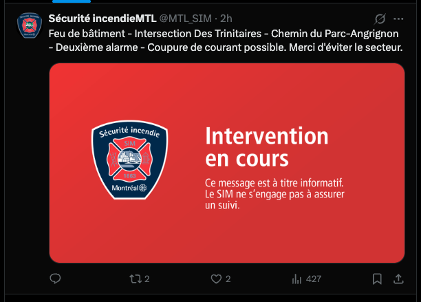 Il semble y avoir un incendie dans l’ancien bâtiment du Zoo/ferme/fort Angrignon. Est-ce que quelqu’un en sait plus ?
