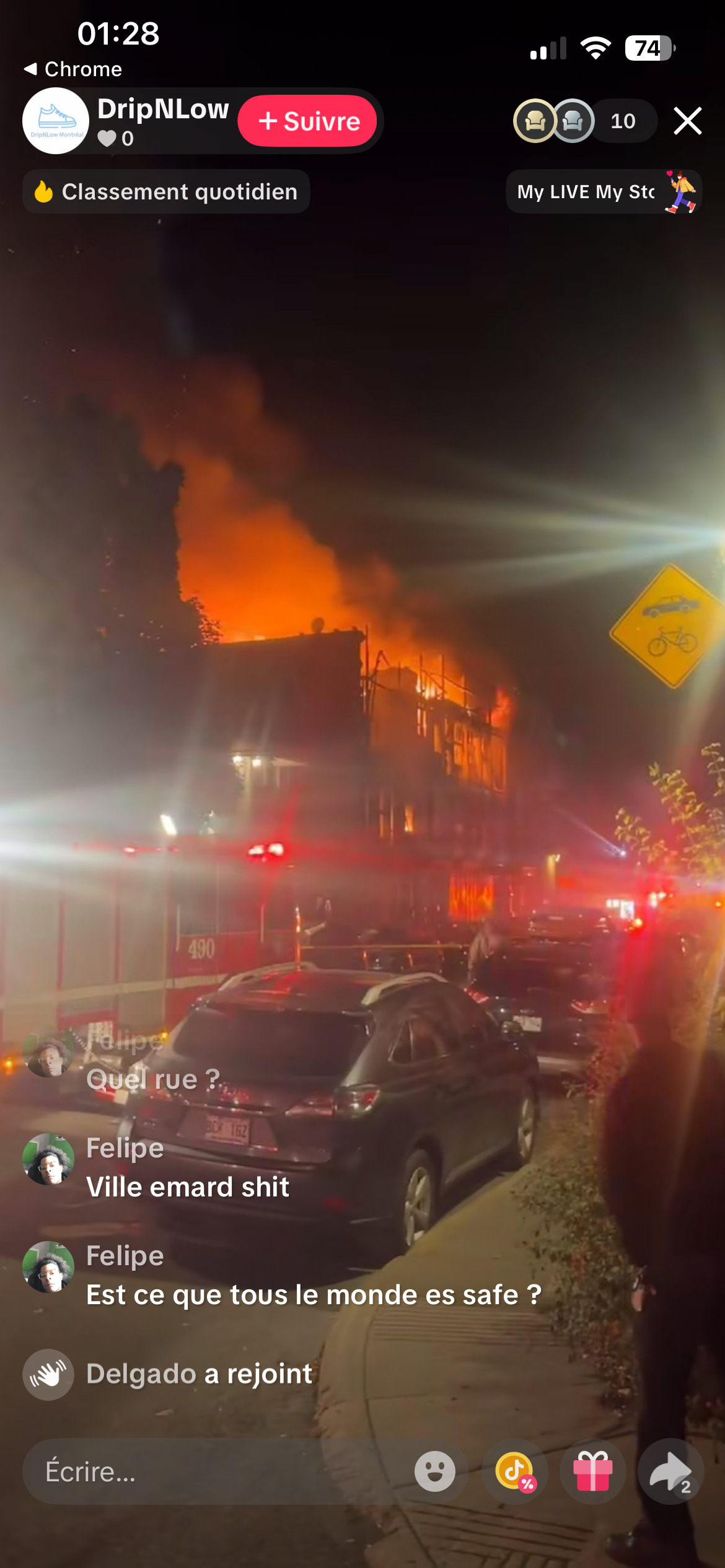 Gros incendie à Ville-Émard, coin de Villiers / Hadley. Vu sur un Tiktok en direct. Apparemment qu’il y a déjà eu un incendie dans ce bâtiment au début de l’été.