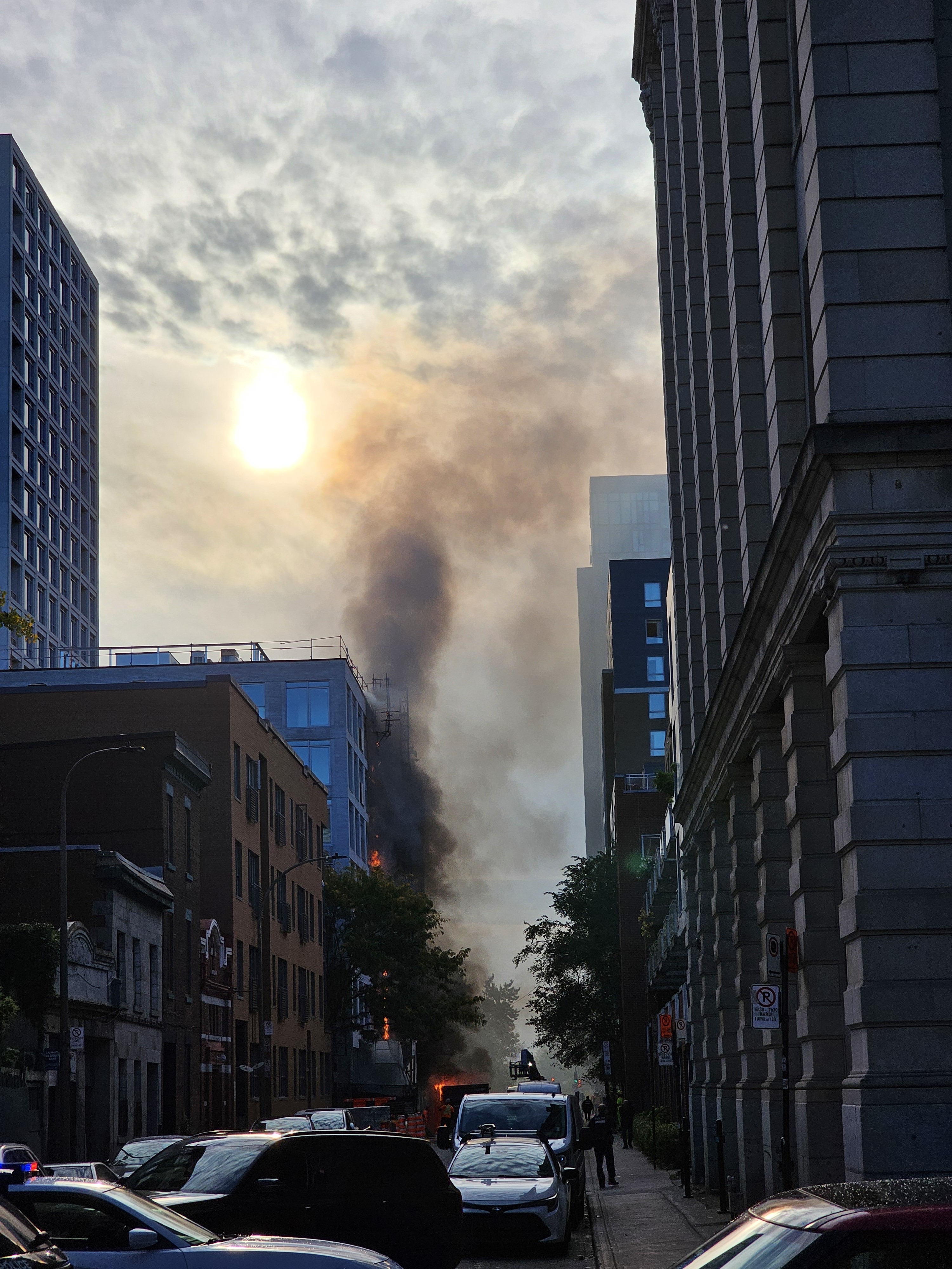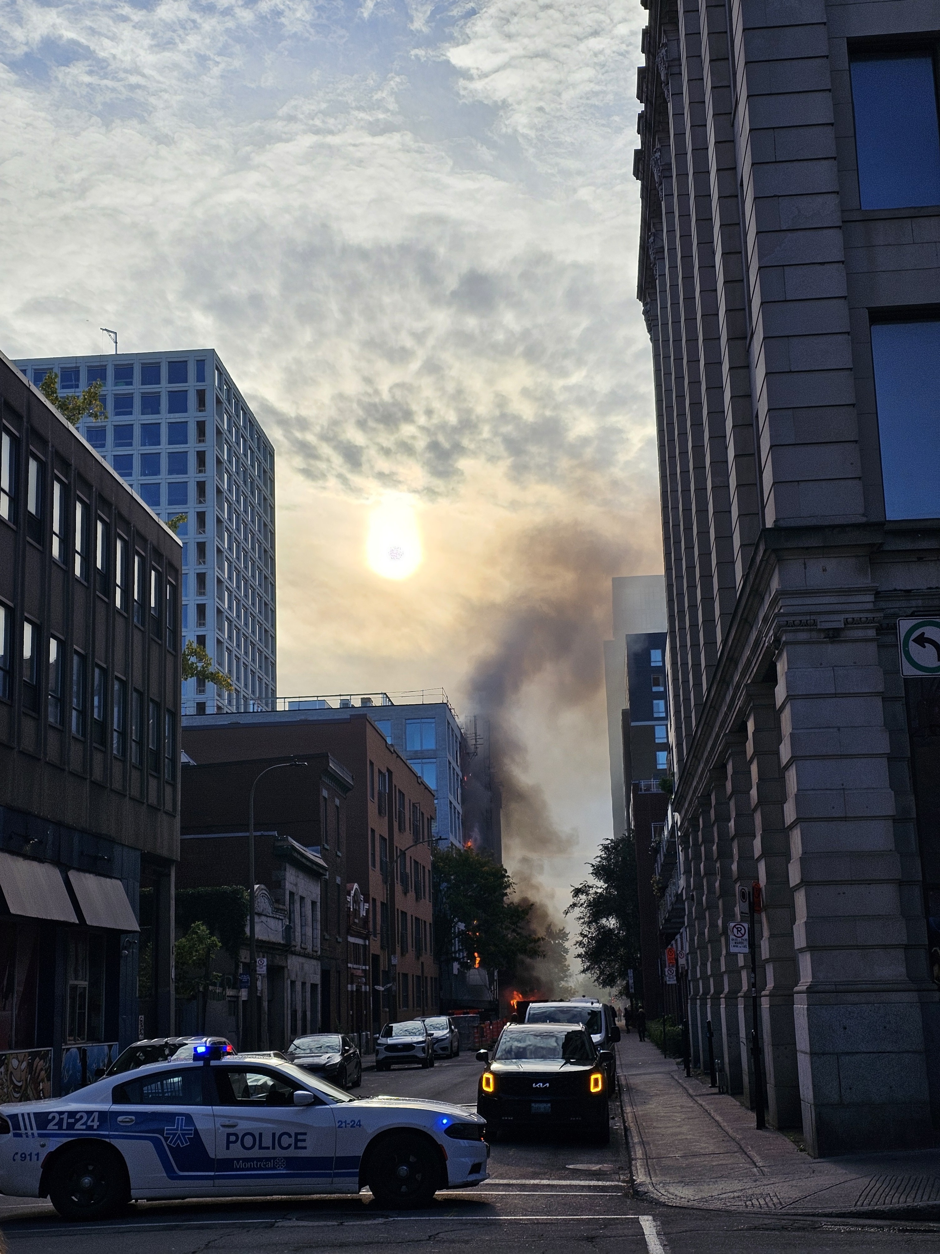 Gros feux qui débute sur l’Av. Hôtel-de-Ville, entre Sainte-Catherine et René-Lévesque. 8h40. Police sur place
