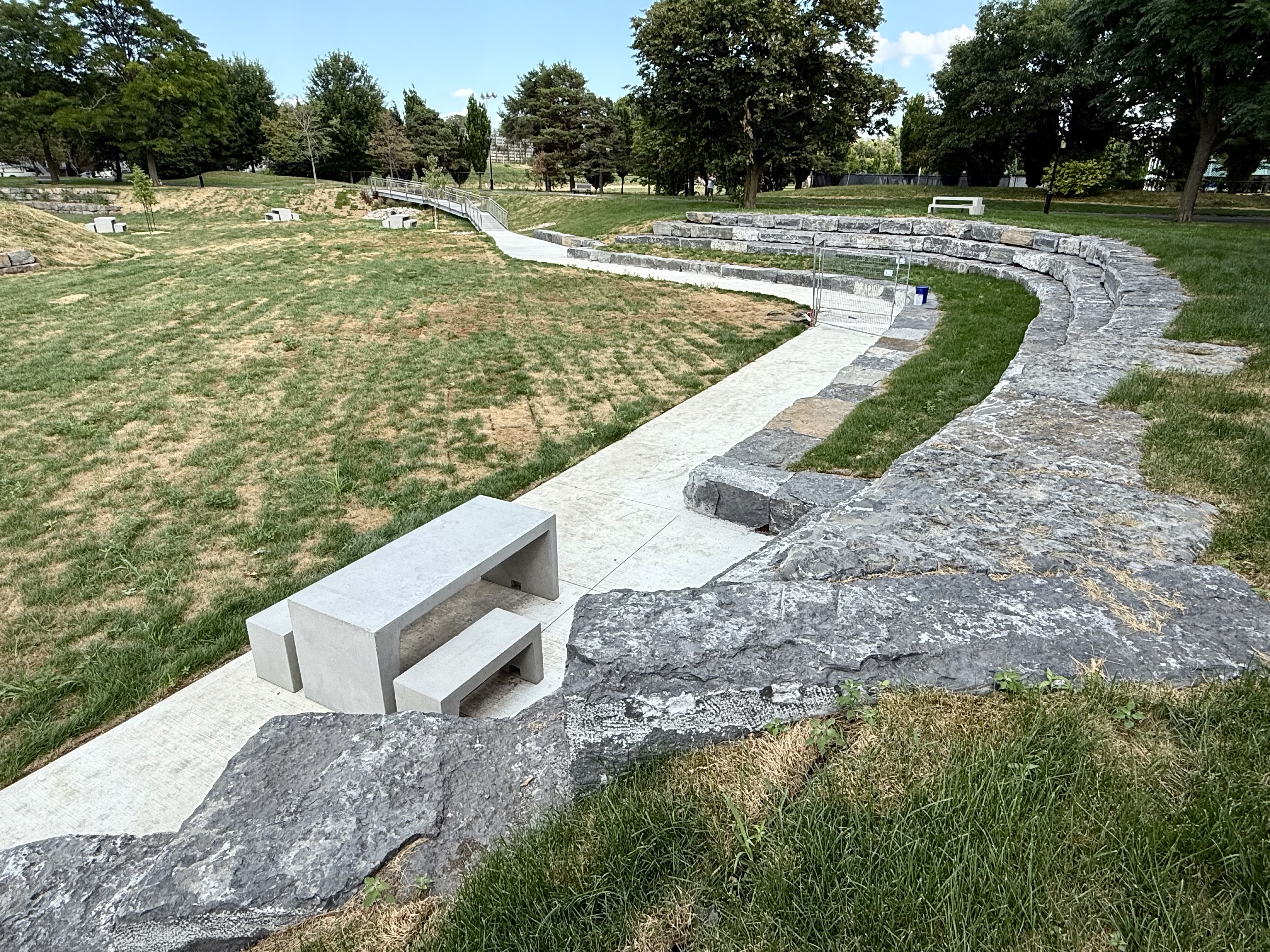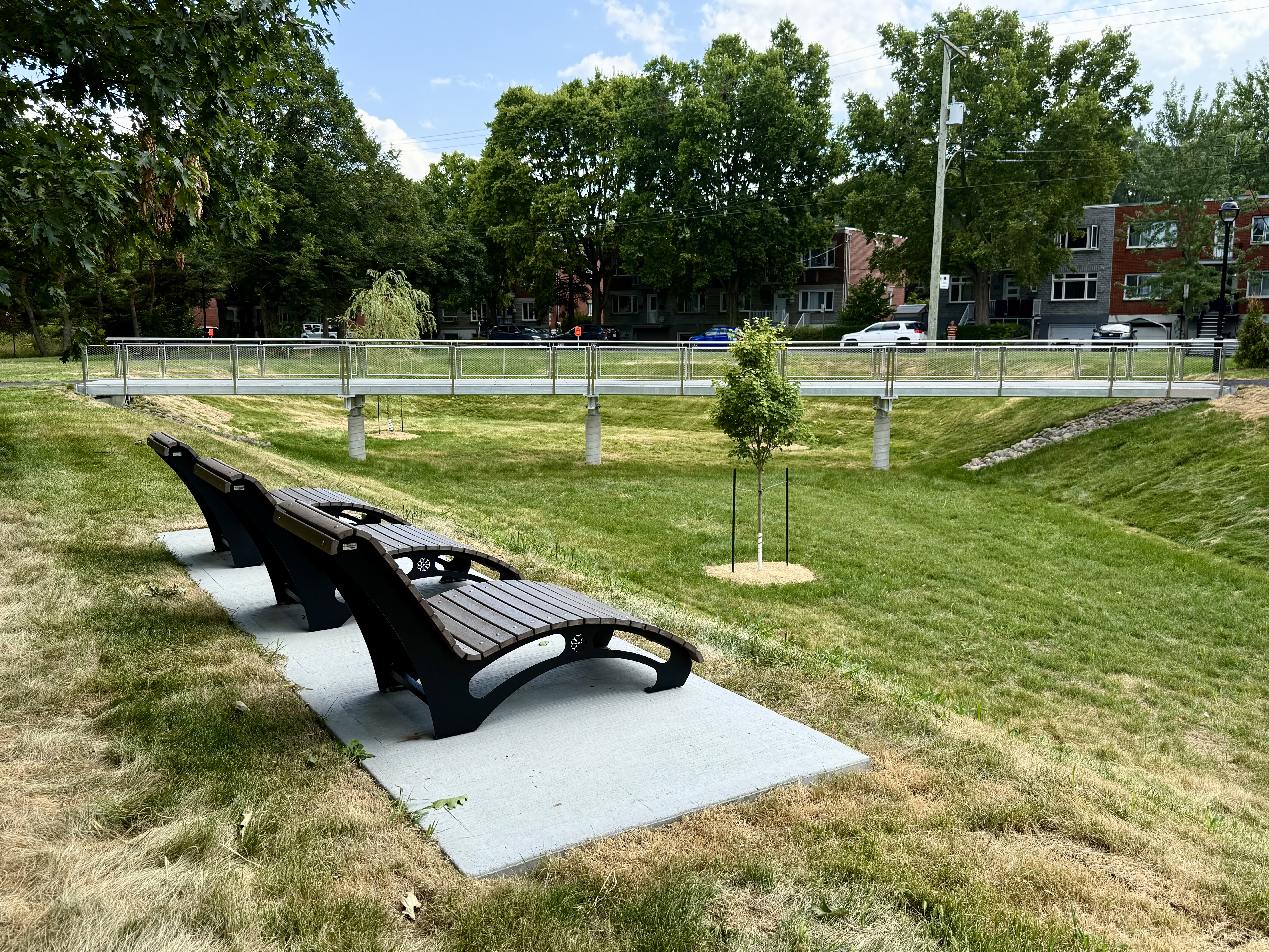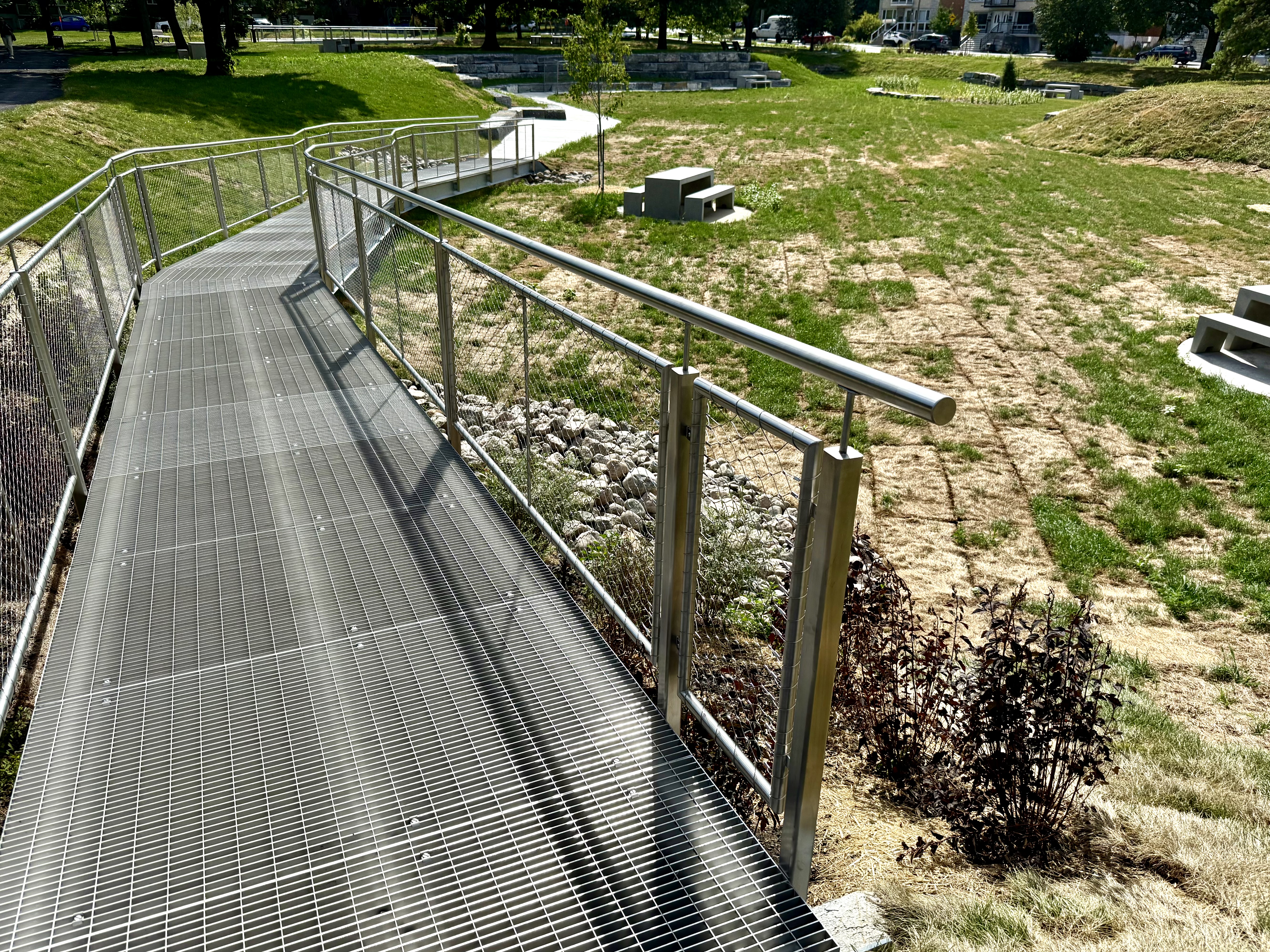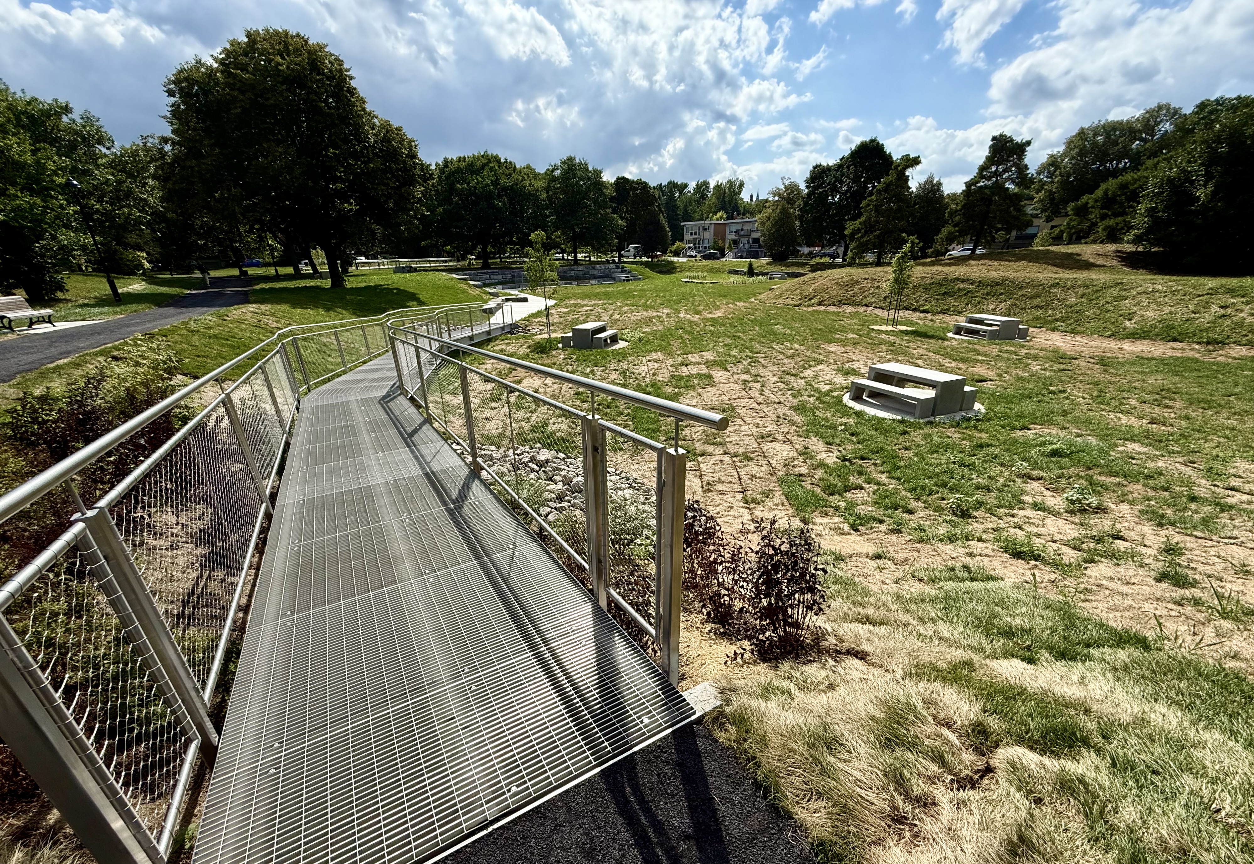Merci pour les photos. Une autre belle réalisation de l’administration Plante qui en plus de la fonction drainante, enjolive le secteur par sa topographie originale et ses élégantes passerelles. En même temps c’est plus rassurant pour les gens du voisinage, notamment pour l’importante capacité de rétention qu’aura cet ouvrage.