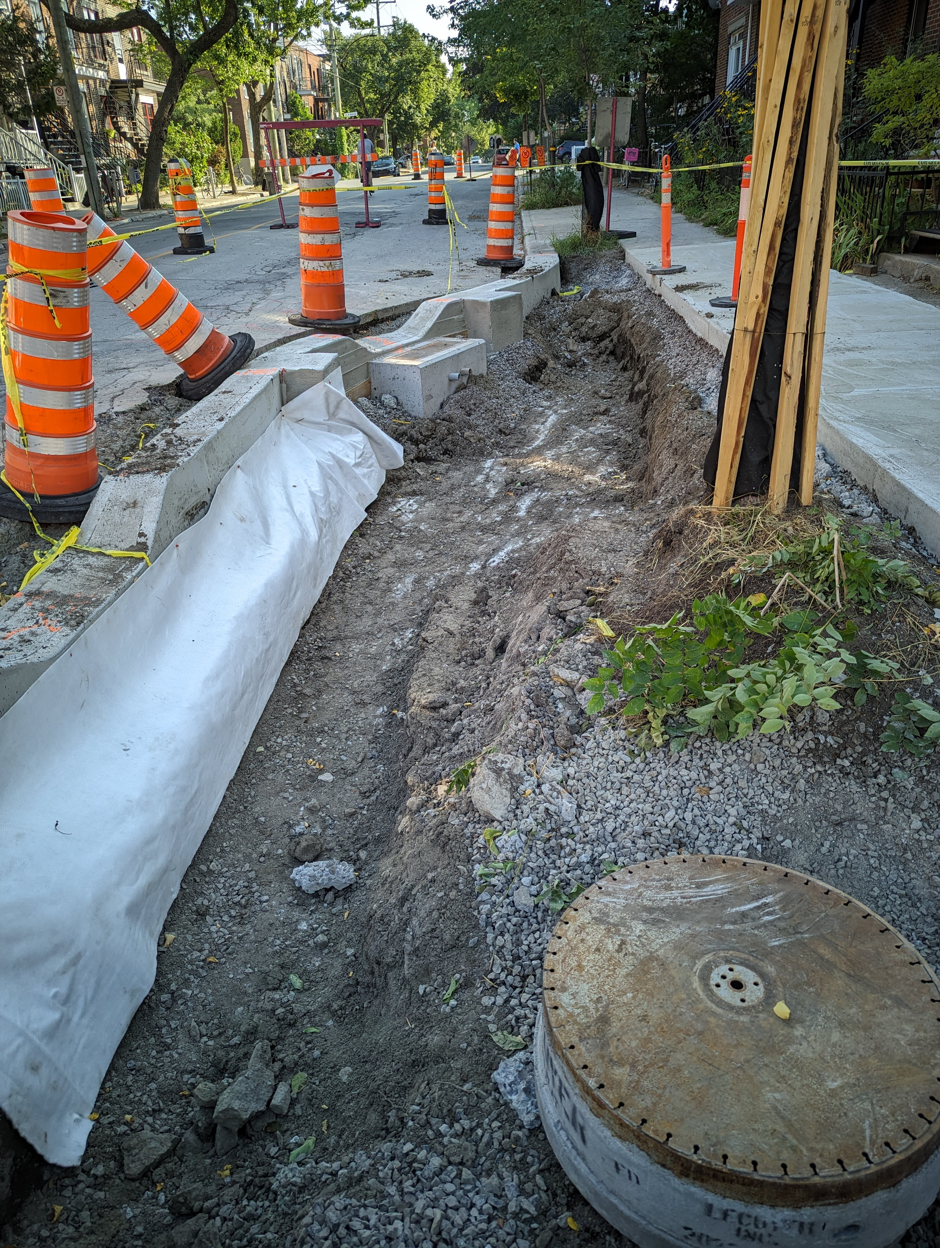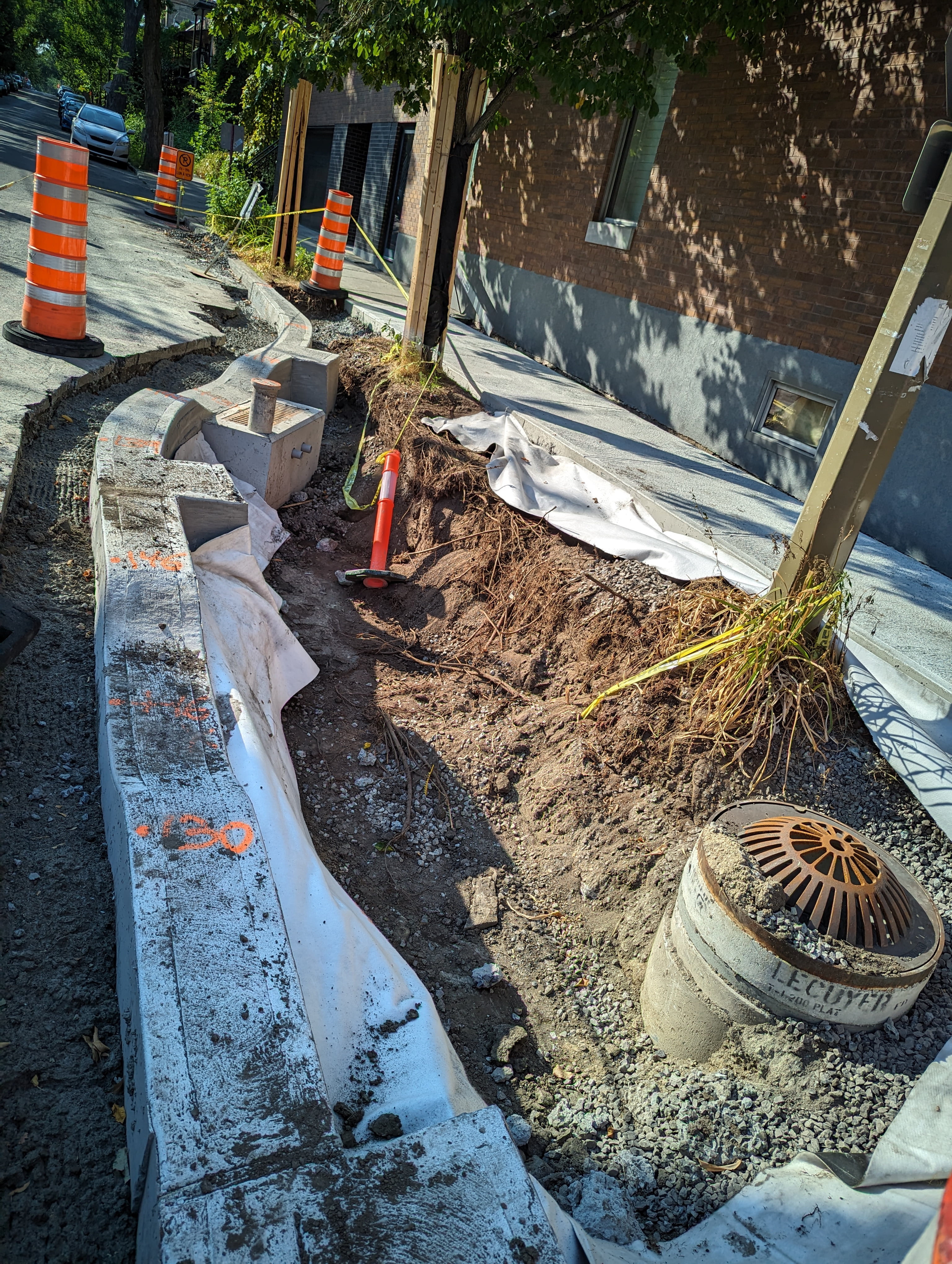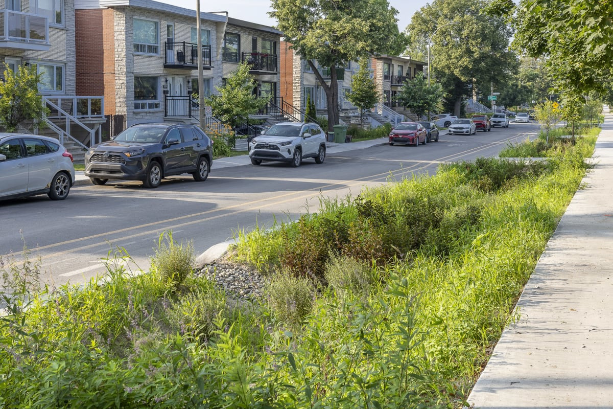 Rue Hamel, dans Ahuntsic, saillies drainantes tout le long de la rue: