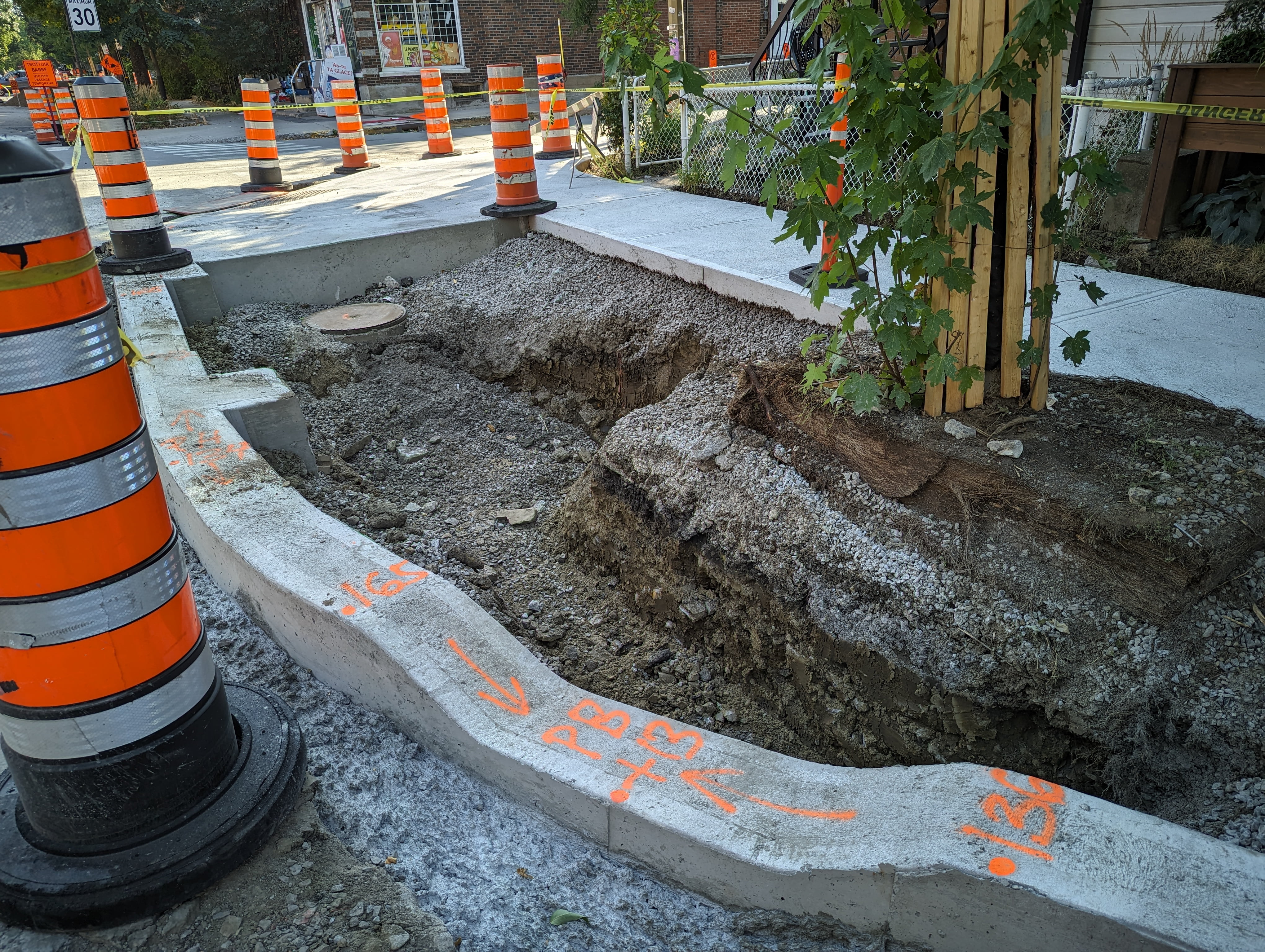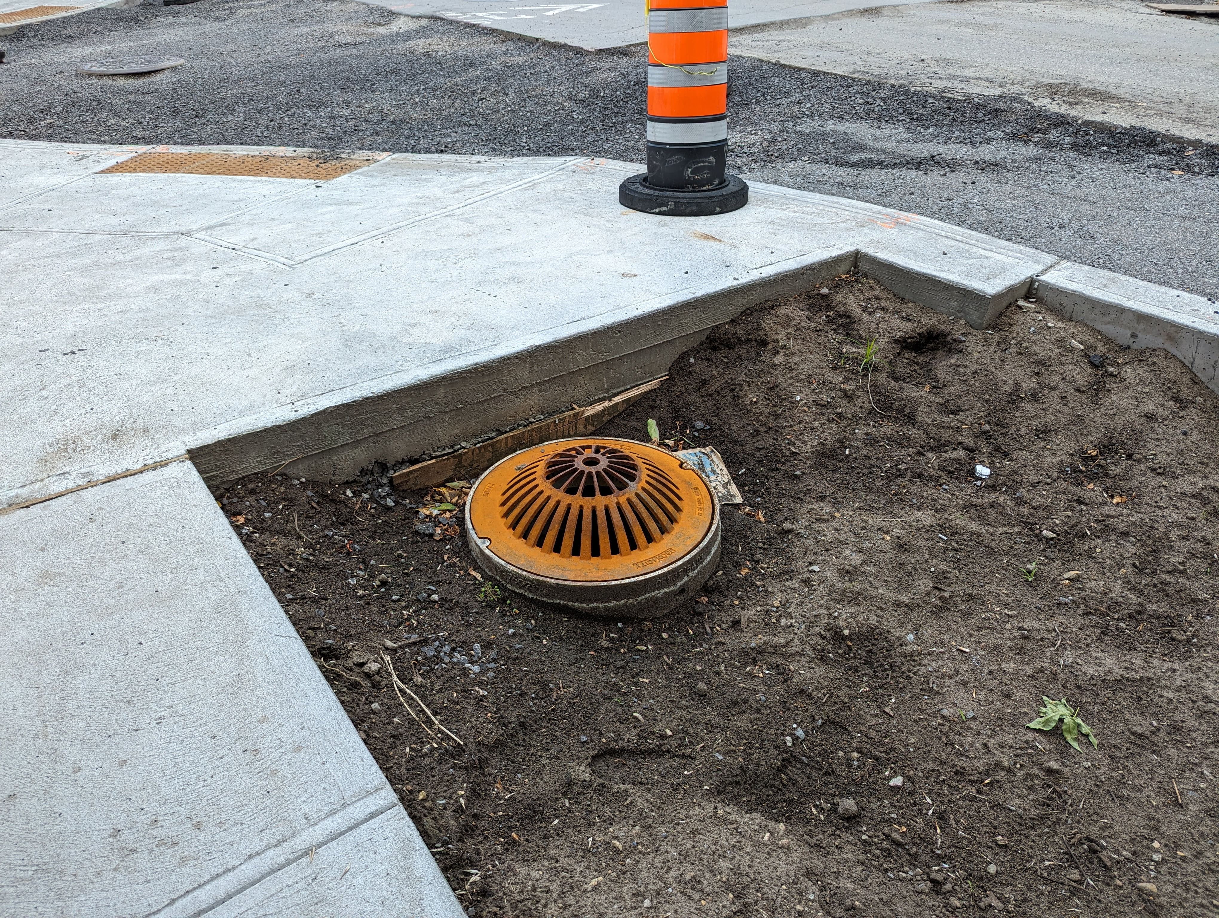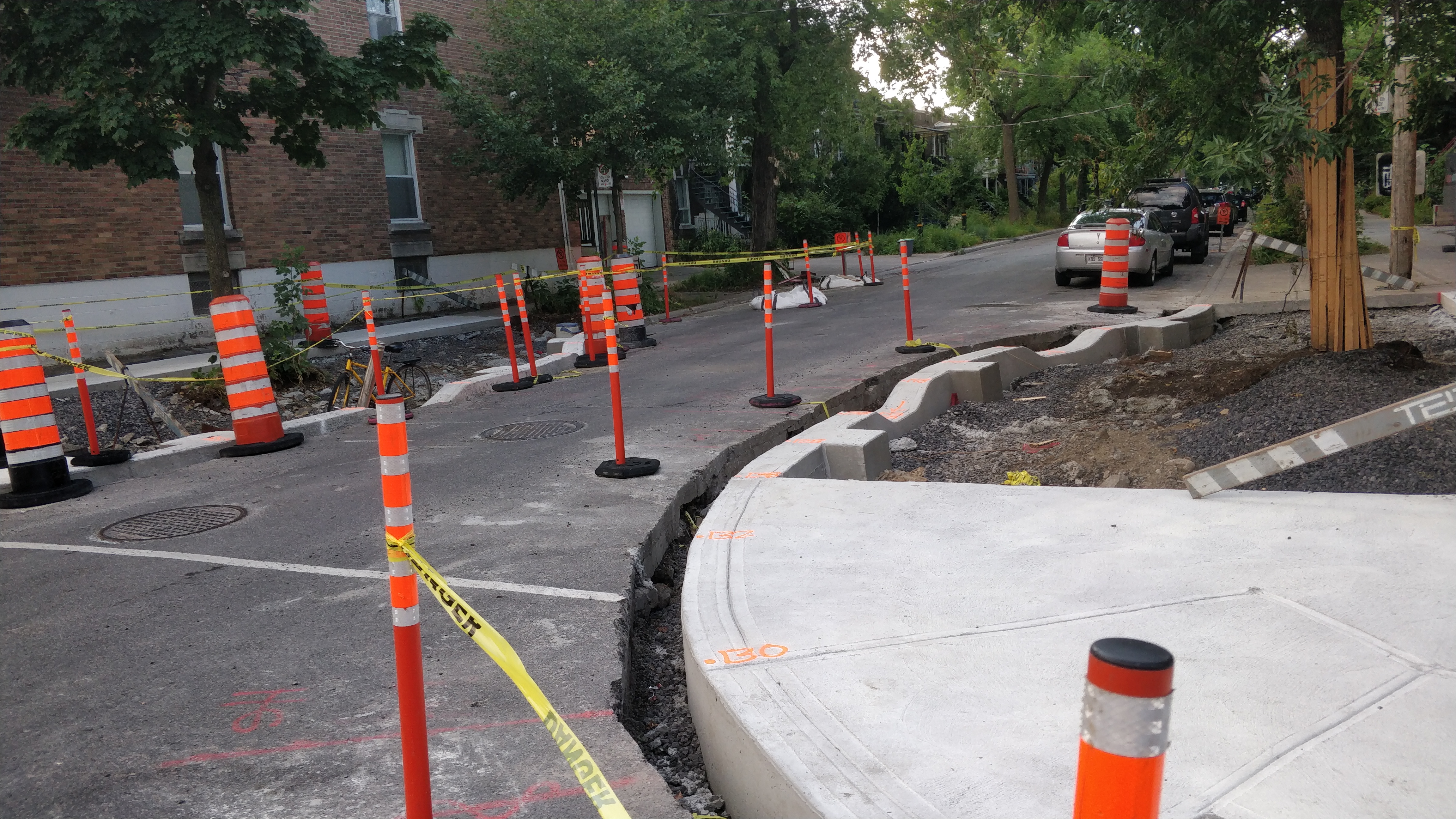 Rue Hamel, dans Ahuntsic, saillies drainantes tout le long de la rue: