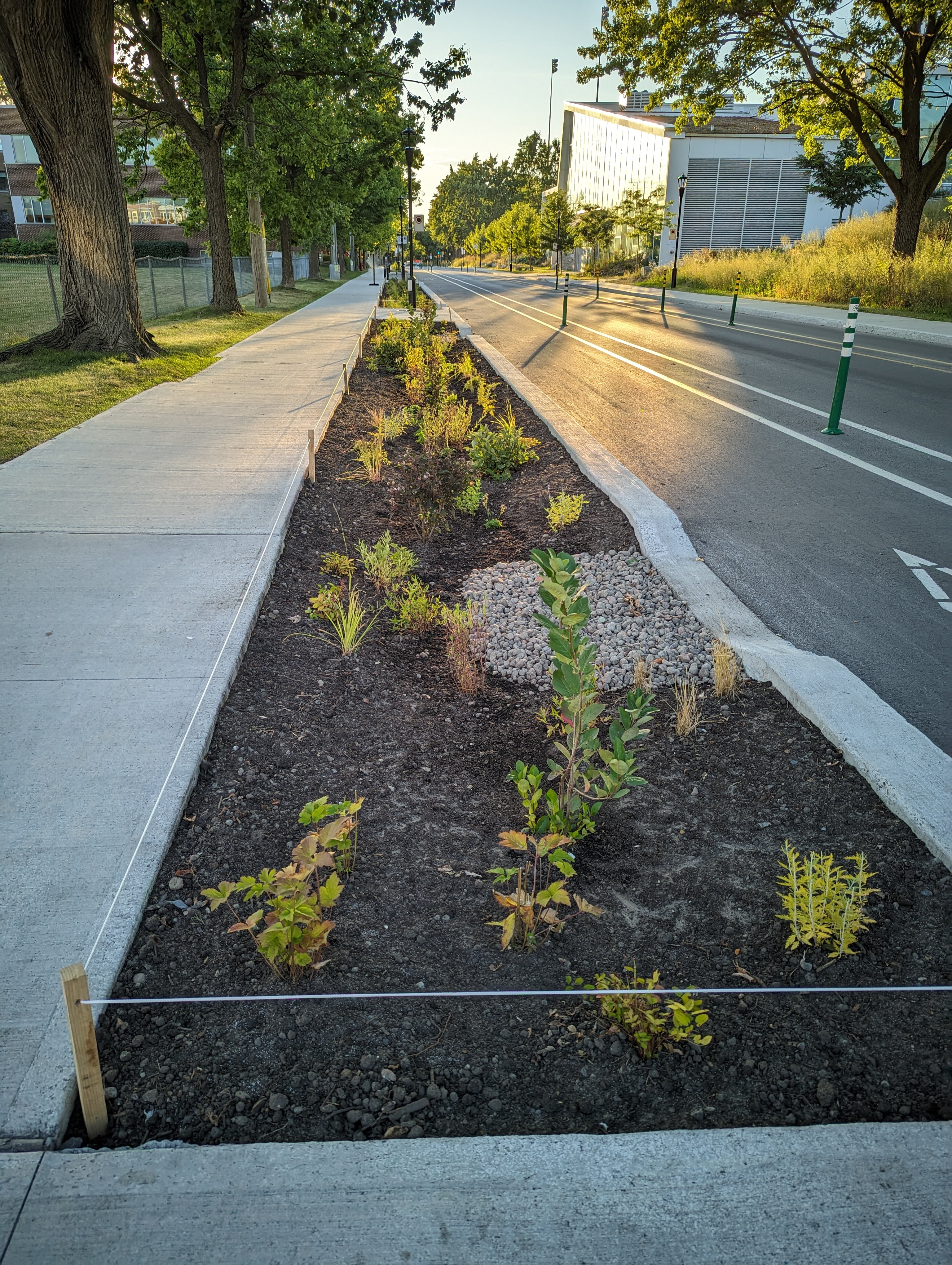 Je pense que c’est une occasion manquée de ne pas faire de celui-ci une jardinière éponge. Lorsqu’il pleut, une grande quantité d’eau s’écoule vers lui en descendant la pente.