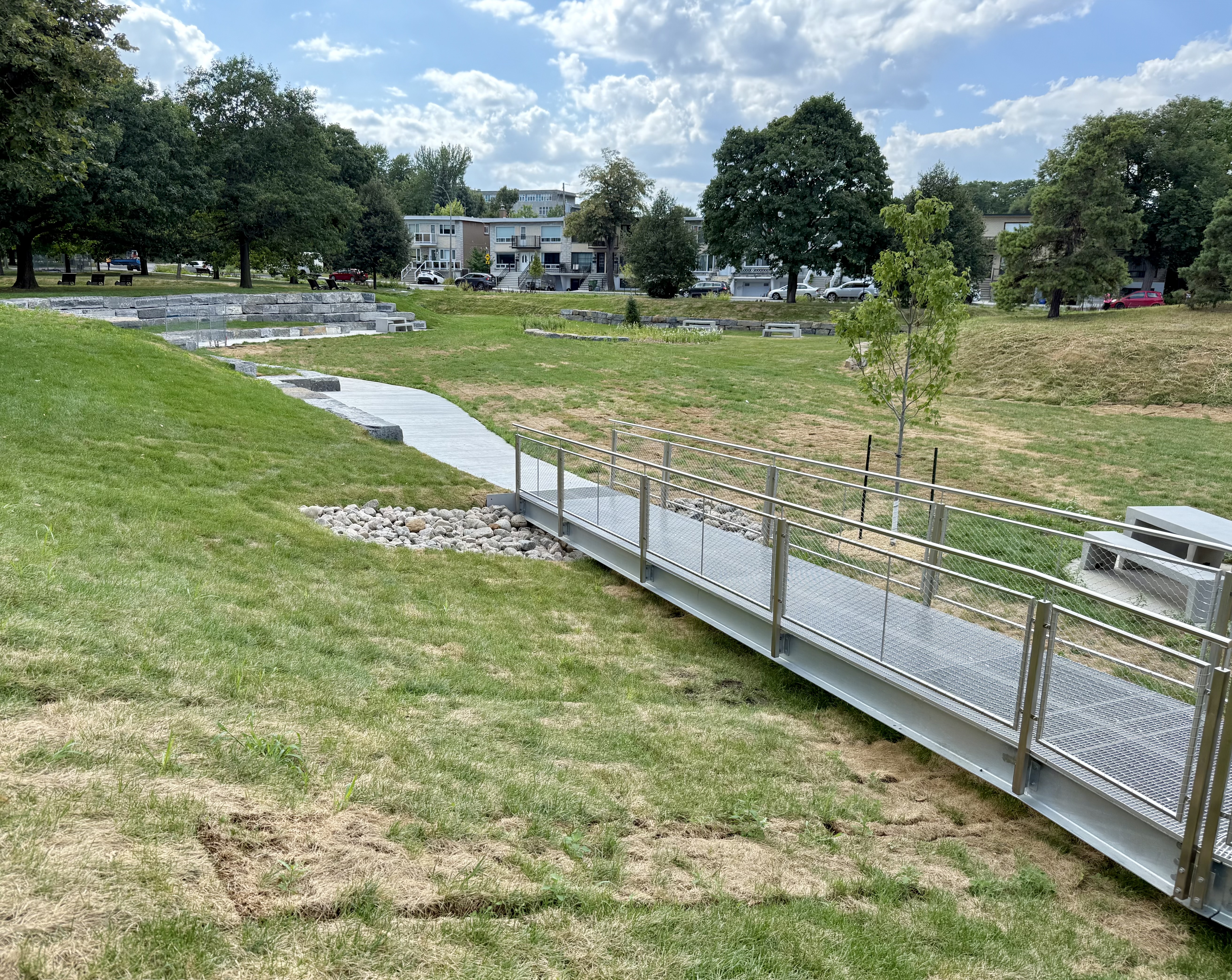 Découvrez le parc résilient Pierre-Bédard dans MHM qui réduit les risques d’inondations de surface lors des pluies diluviennes qui sont de plus en plus fréquentes en raison des changements climatiques.