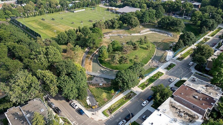 On semble alors y envisager une intervention qui aurait plusieurs aspects dont la gestion d’eaux pluviales pour tout le quartier avoisinant.