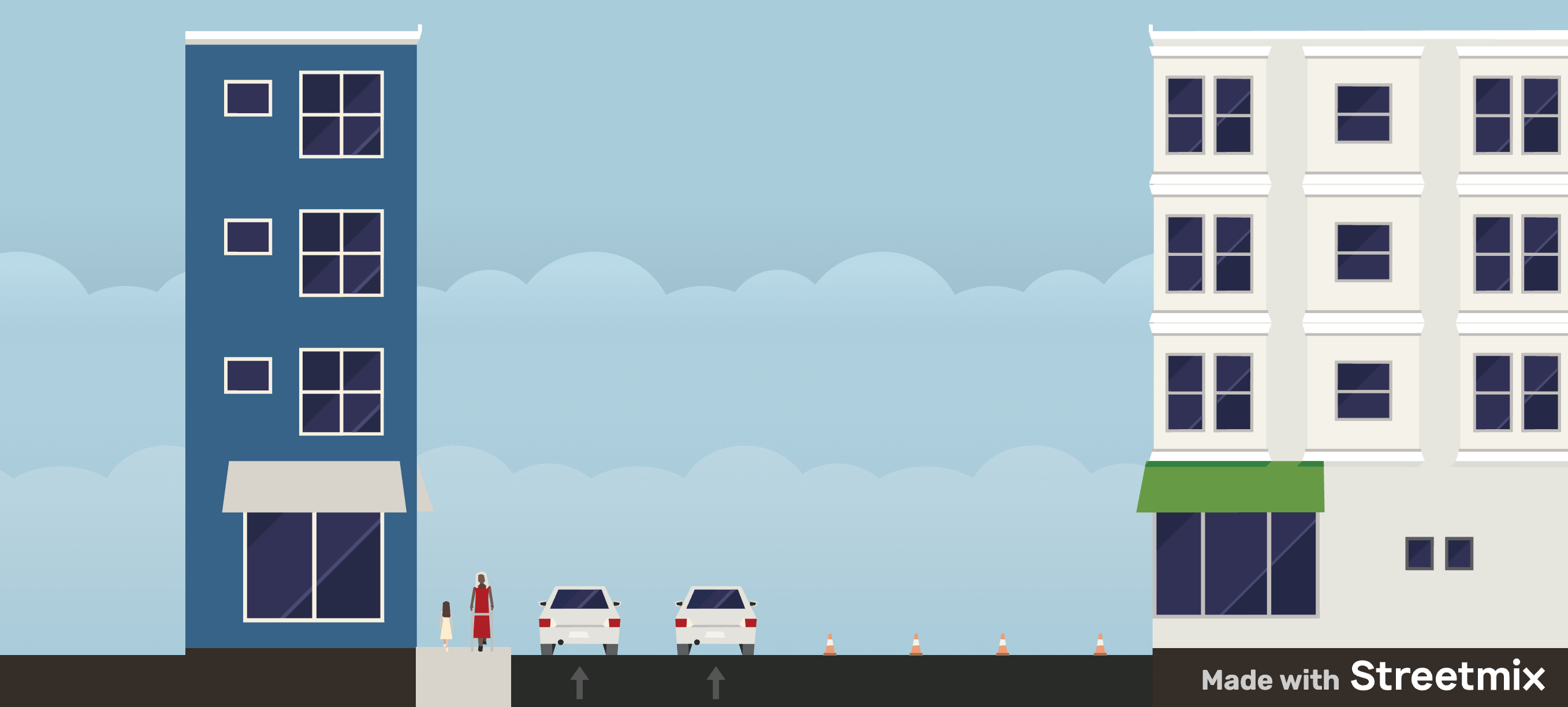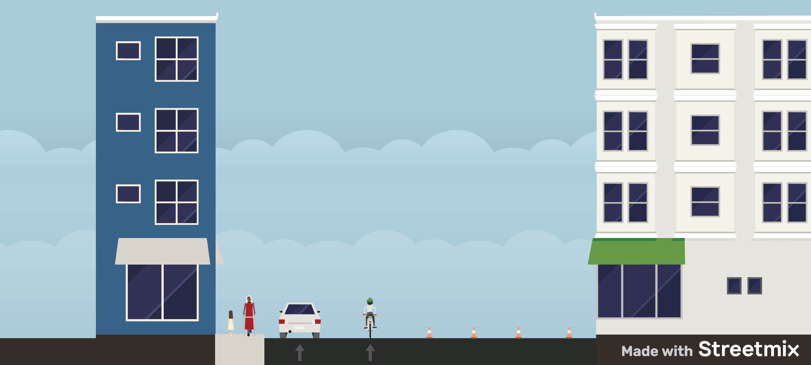 J’ai trouvé que l’aménagement temporaire qui est en place depuis quelques semaines est vraiment dangereux. Voici un explication en images. (Les dimensions ne sont pas importantes.)