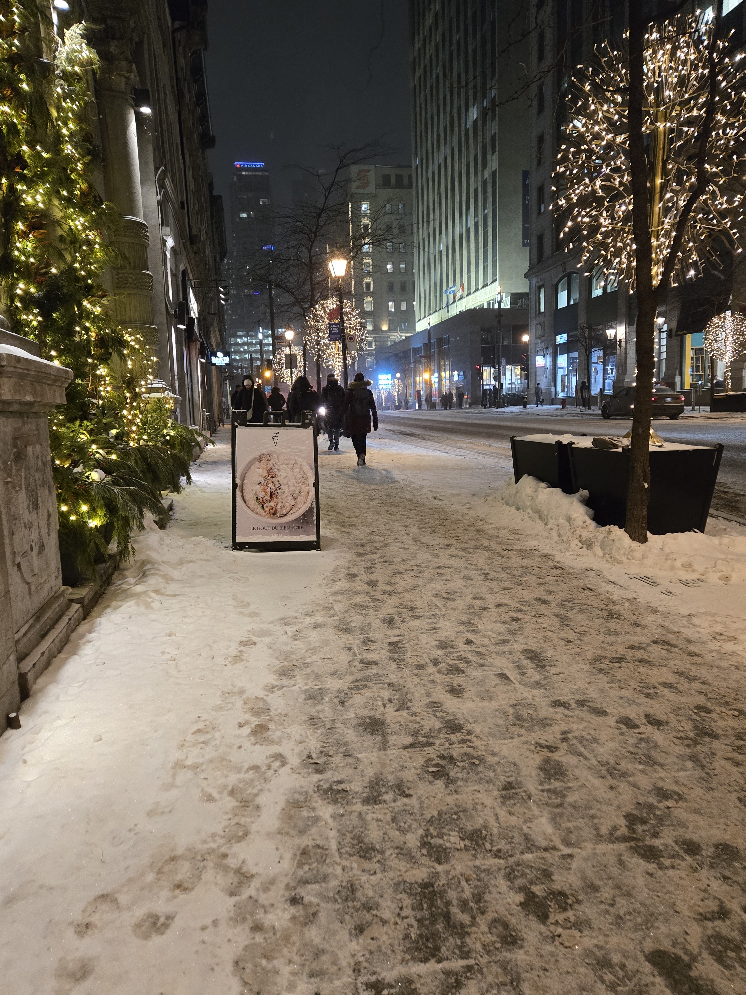 Dommage de laisser une grosse pancarte de la sorte sur le trottoir en plein hiver, gênant le passage des piétons. Le LOV devrait, selon moi, la remiser jusqu’au printemps. La réglementation devrait d’ailleurs être plus coercitive, à cet effet.