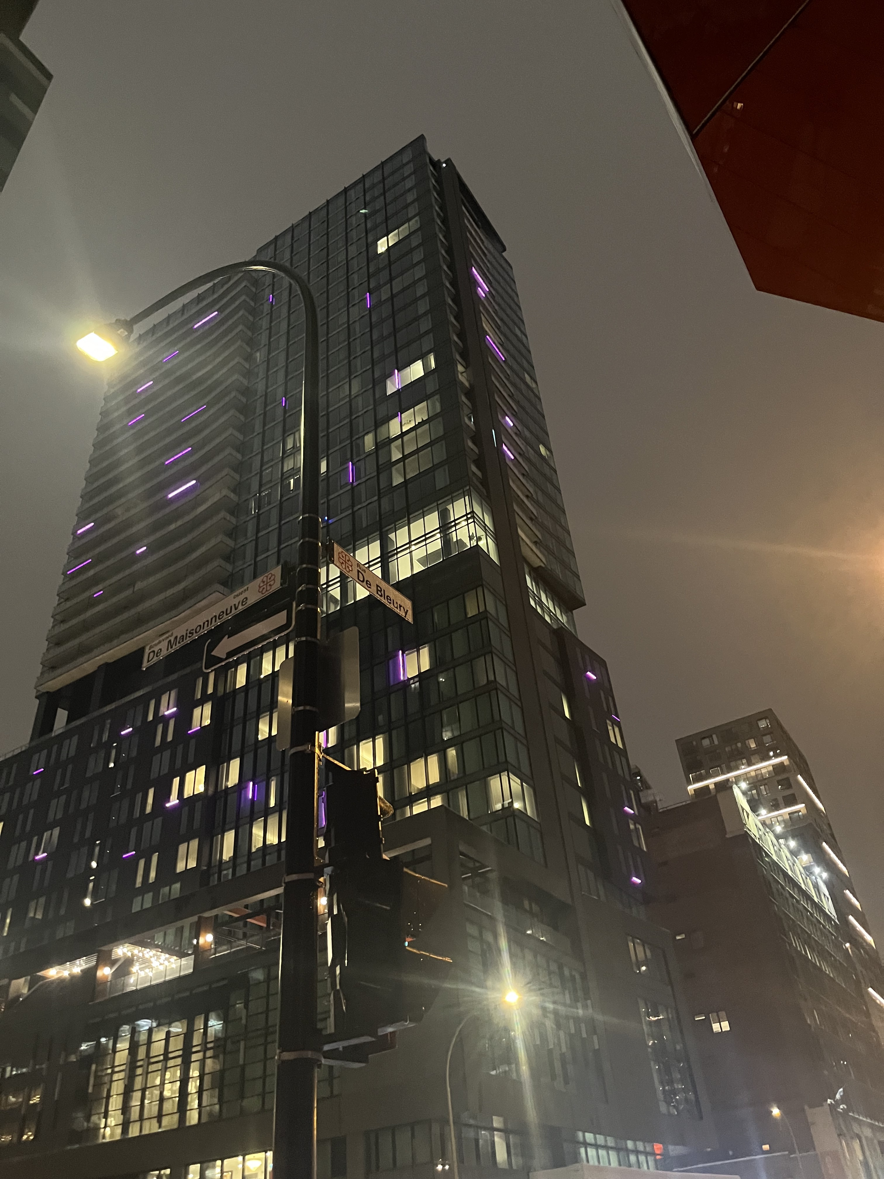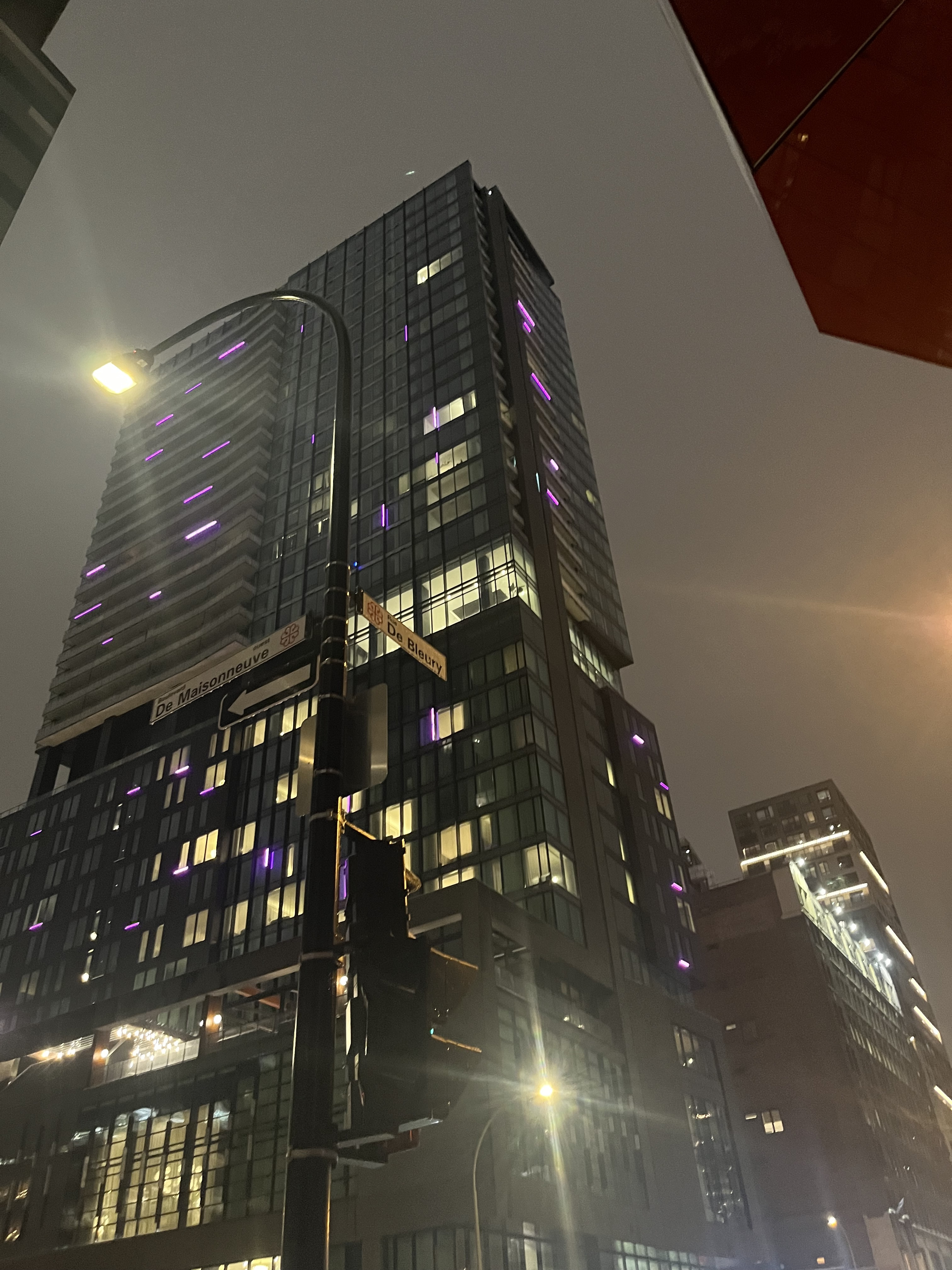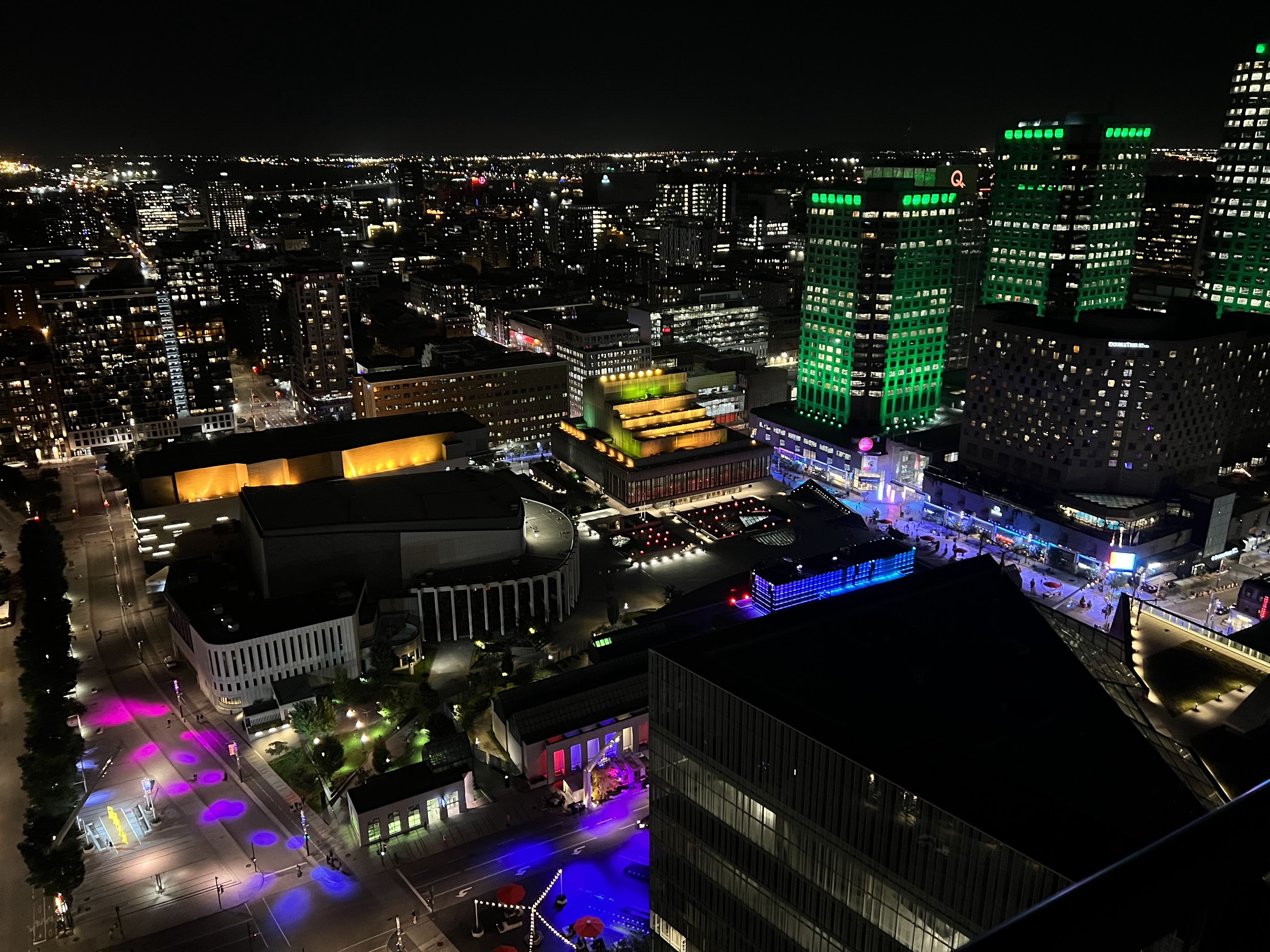 Pas de photos des feux d’artifices à vous montrer tristement. Les peu visibles au loin sont peu visible avec un appareil photo de téléphone, et ceux de la Place des Arts non visible de ma vue ![]()