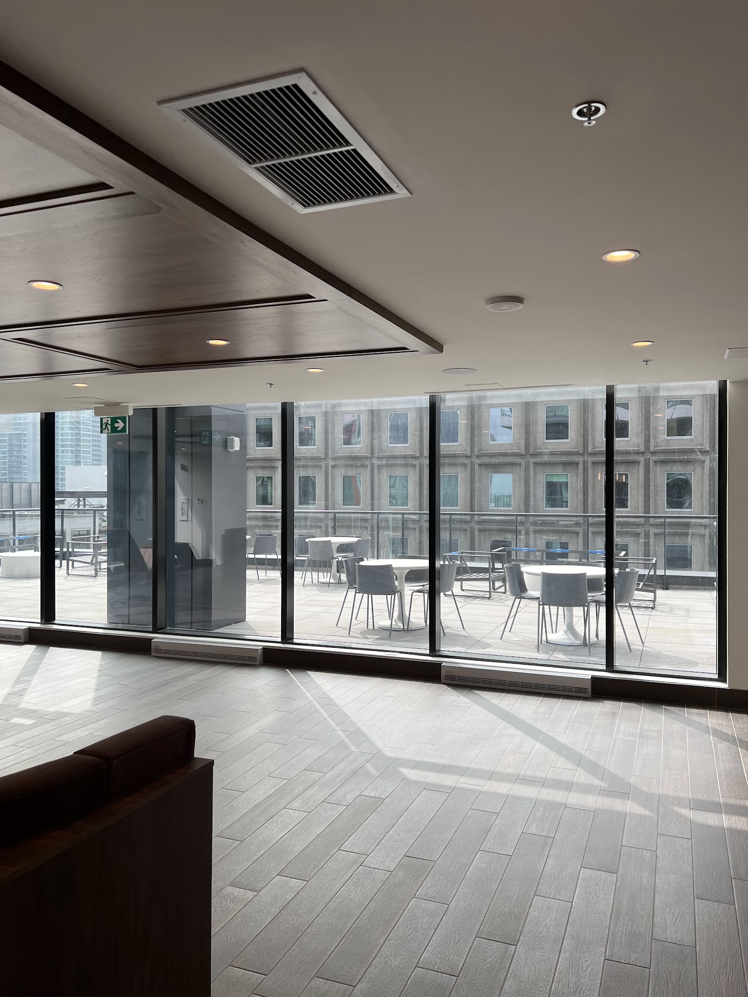 La zone commune pour résidents seulement a récemment été aménagée car précédemment vide, on peut y trouver des canapés, chaises et tables basses, certaines tables n’ont pas encore leur tabletop mais ça ne devrait tarder.