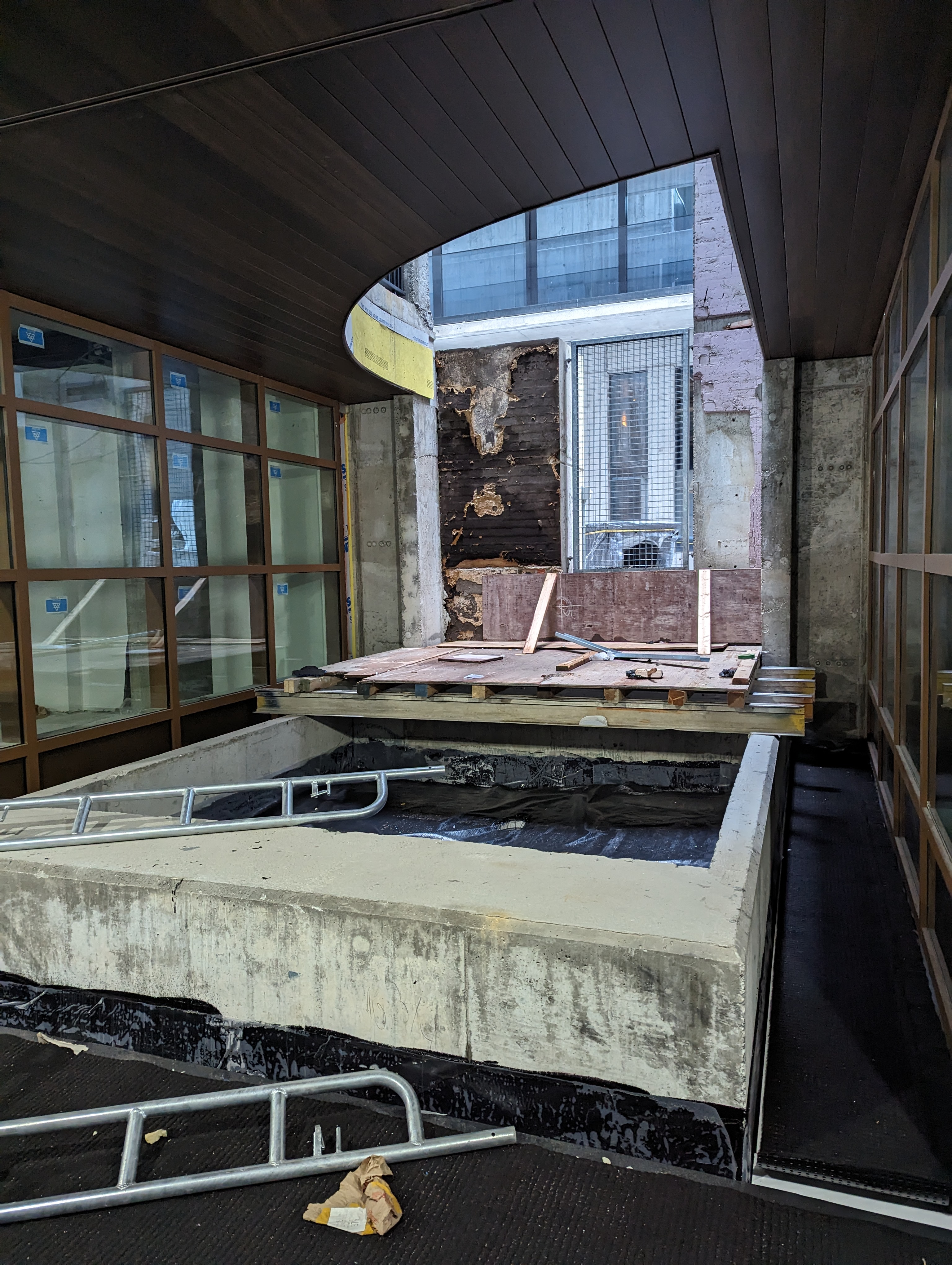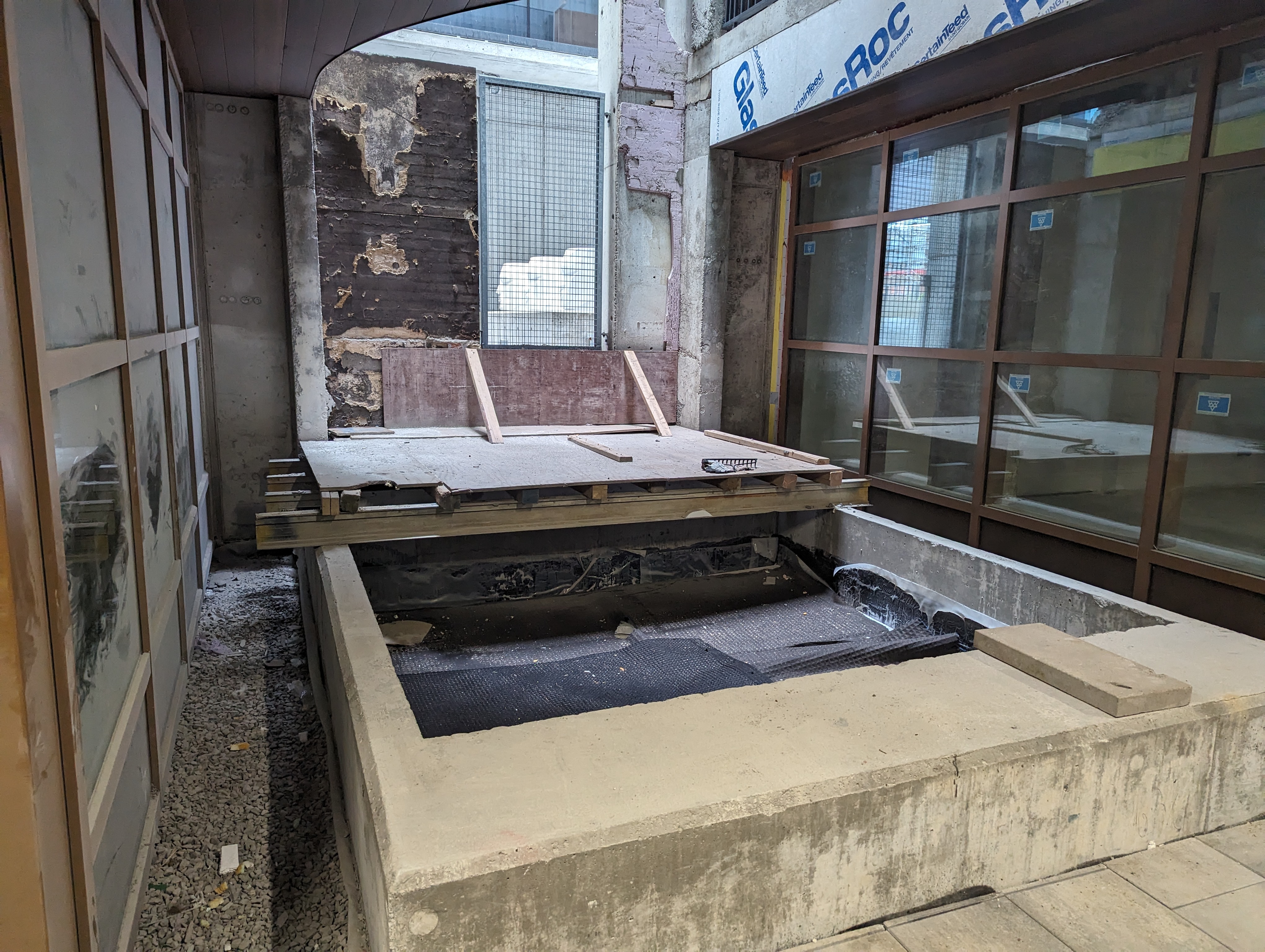 C’est loin d’être terminé, mais il n’y a rien qui bloque l’entrée. Je suis entré en espérant que personne ne travaillerait.
