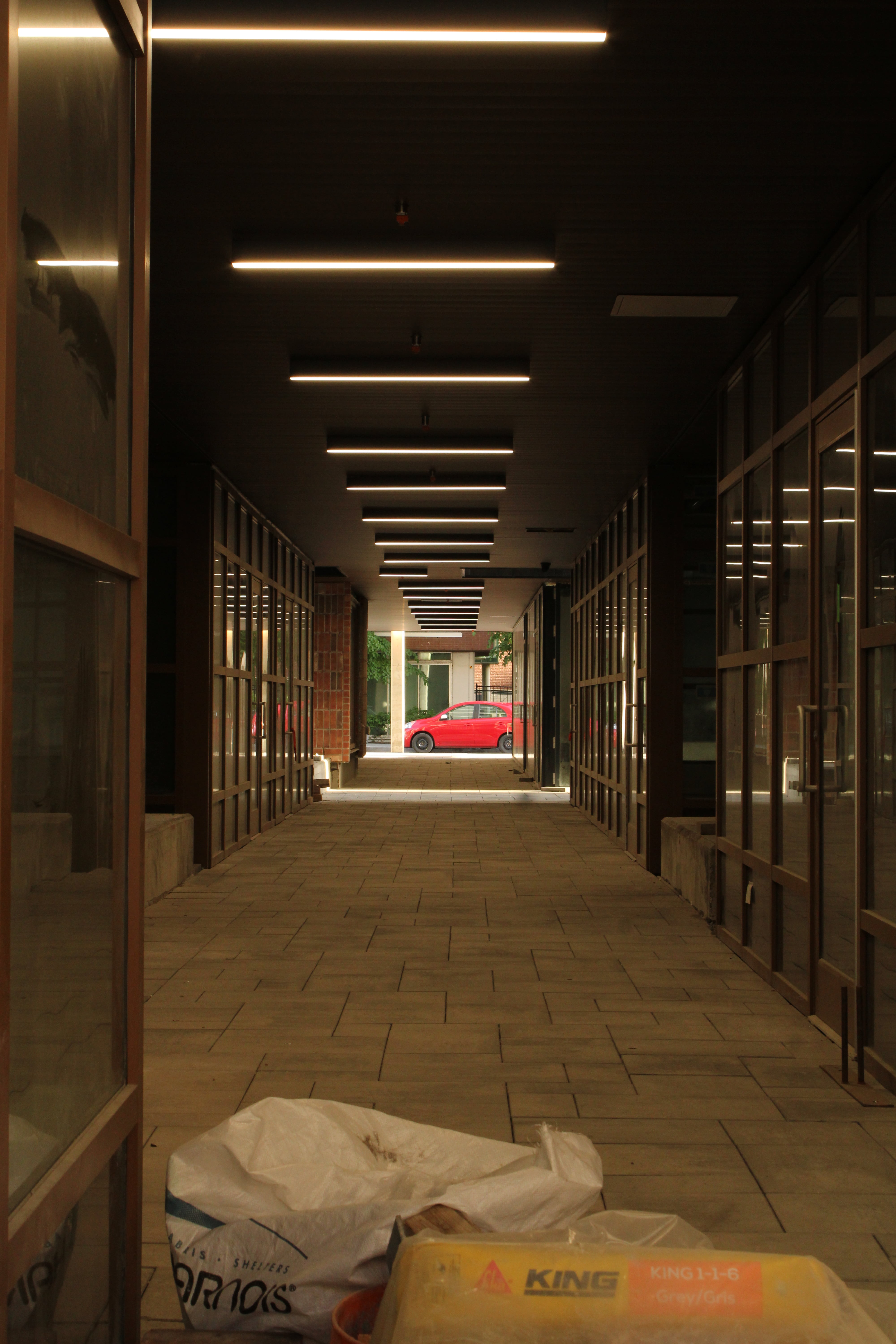 De la rue, la finition du passage semble anodine mais lorsqu’on le traverse, on voit mieux le détail des façades et des orifices au plafond. J’aime bien pour l’instant et ça apporte une touche d’originalité qu’on ne retrouve pas ailleurs dans le quartier. Ce passage est unique et confère une identité propre à l’ensemble .