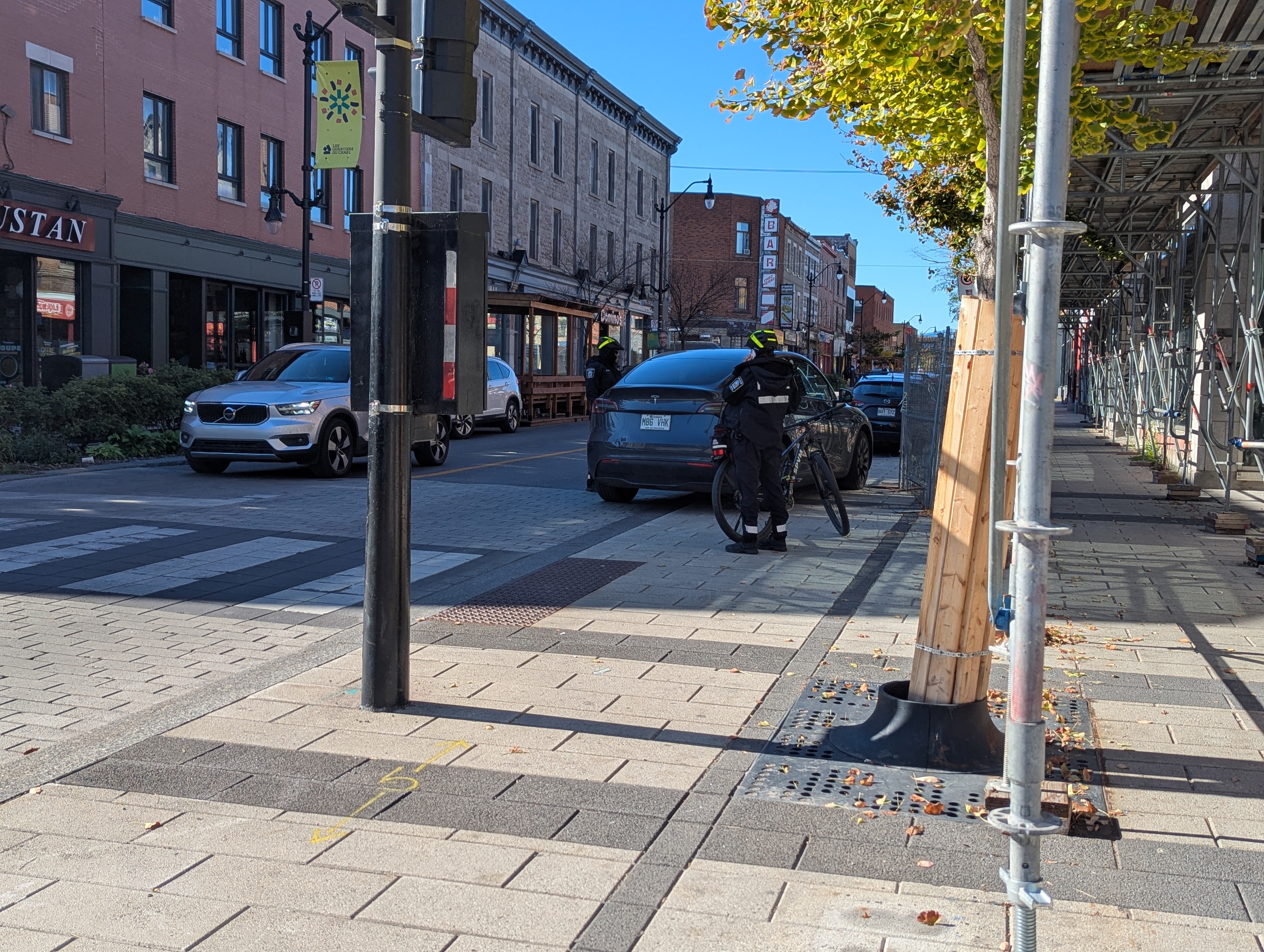 Est ce qu’on est obligés d’avoir une rue autant artificiellement étroite ? Je dis artificiellement parce que clairement il y a de l’espace pour aménager différemment. On sait que c’est fait exprès mais ça ne passe pas le test de la réalité et ce genre de comportements vont continuer sauf si on paye la police à surveiller ça partout.
