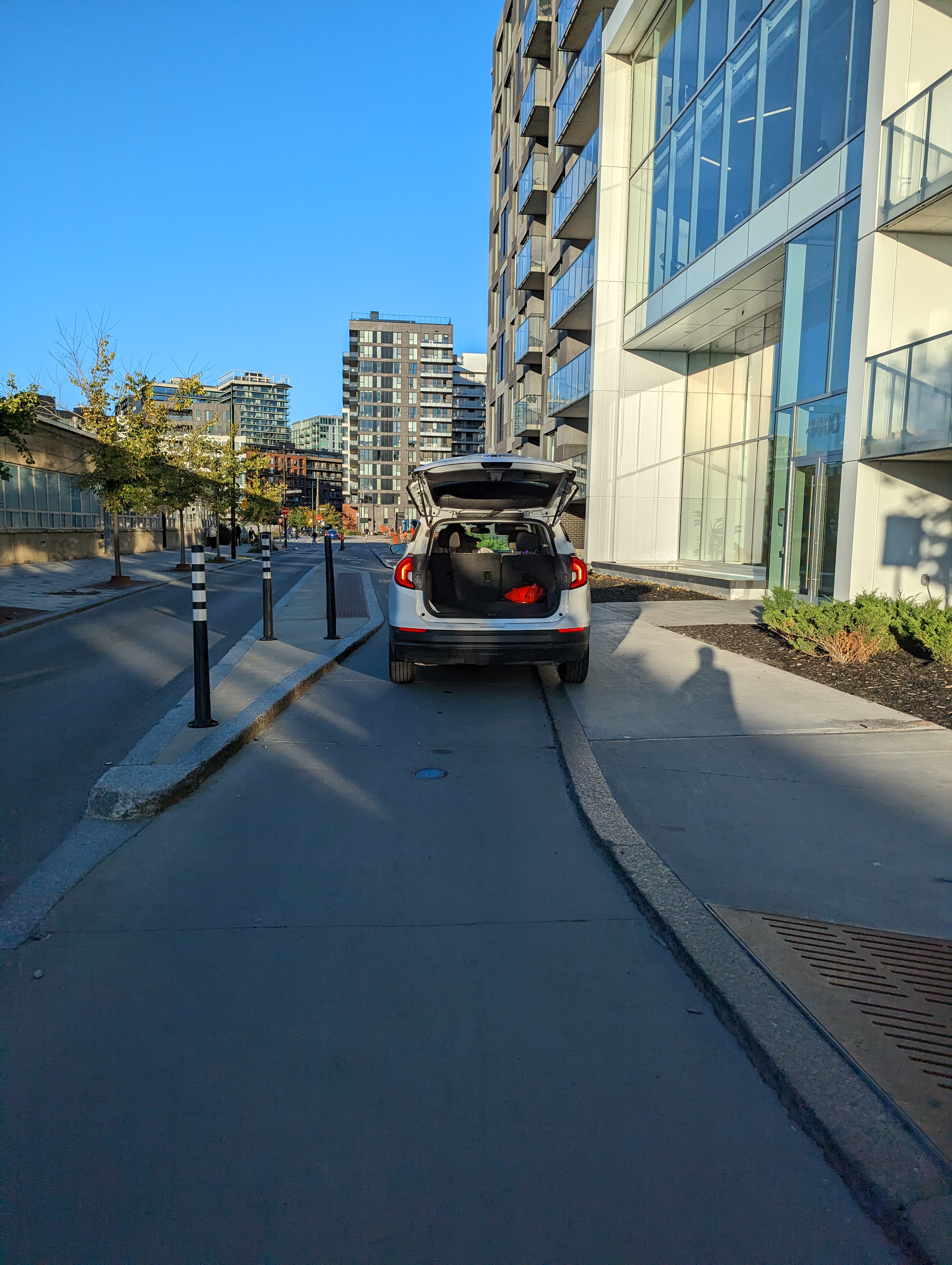 Cette automobiliste a exigé de savoir si j’étais « légalement autorisé » à prendre une photo de son véhicule. C’est fou qu’elle était plus préoccupée par la légalité de prendre des photos dans les espaces publics que par celle de se stationner dans une place réservée aux usager·ère·s vulnérables de la route. (Non, elle n’a pas bougé son véhicule quand je l’ai demandé…)