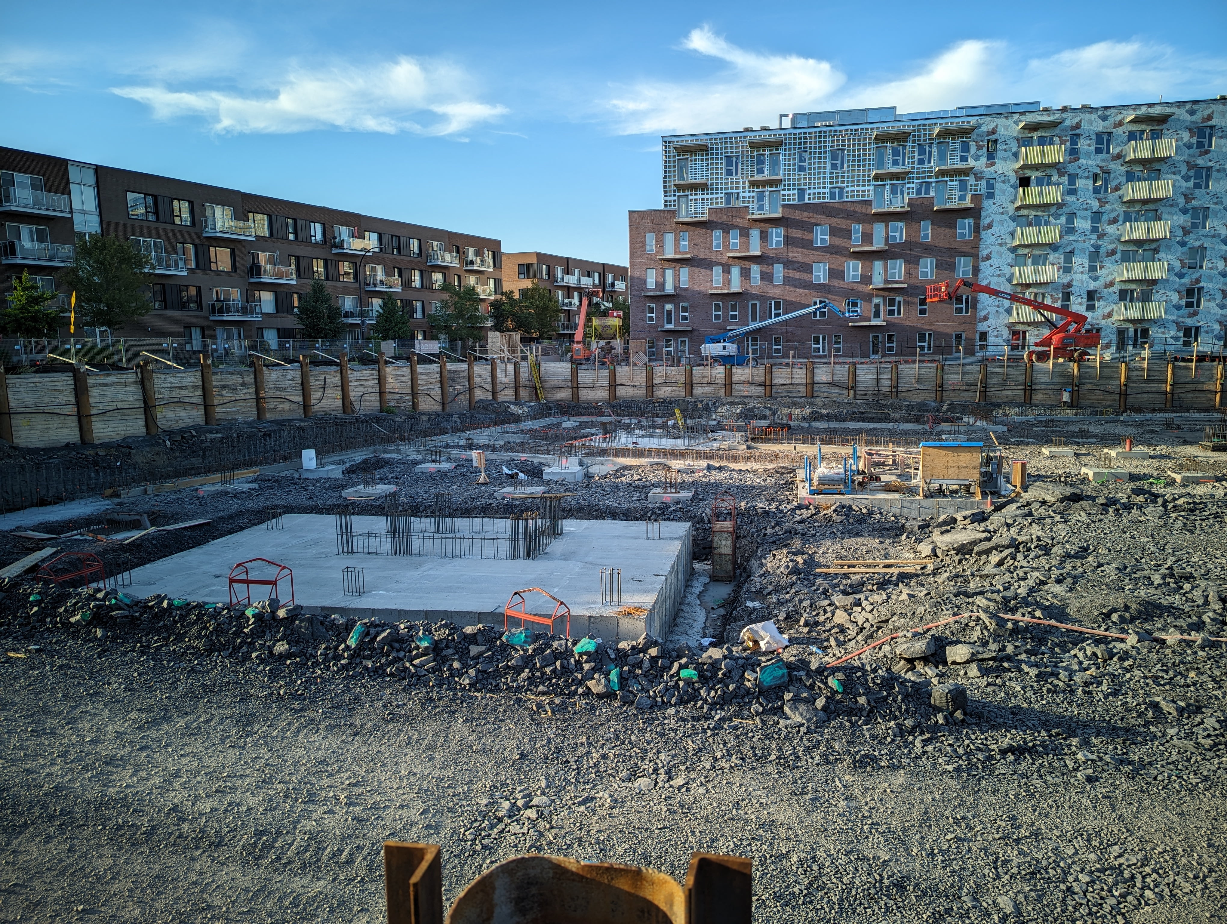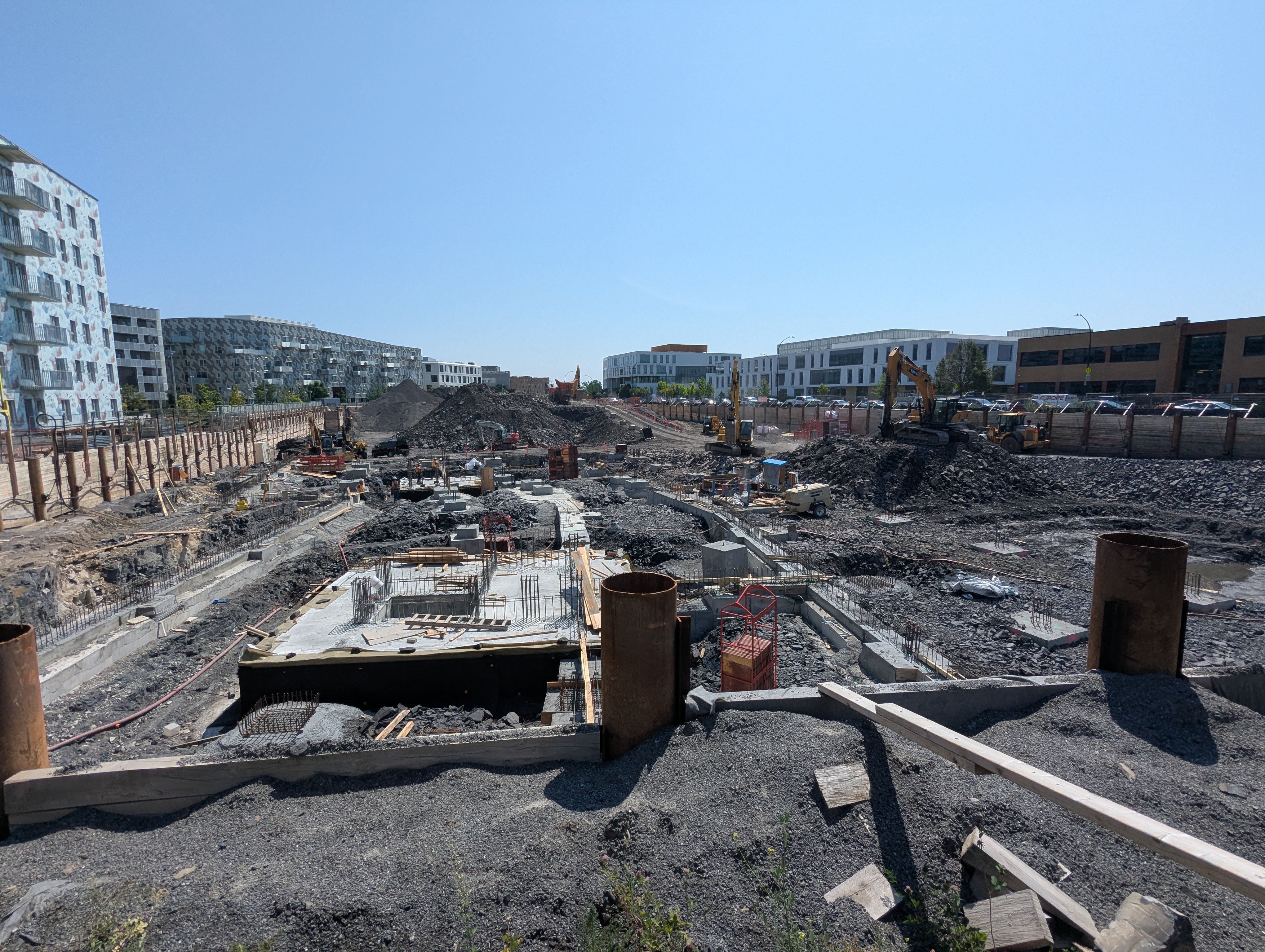 On peut voir du béton pour les fondations dans un coin, et l’excavation avance toujours. Grls chantier!