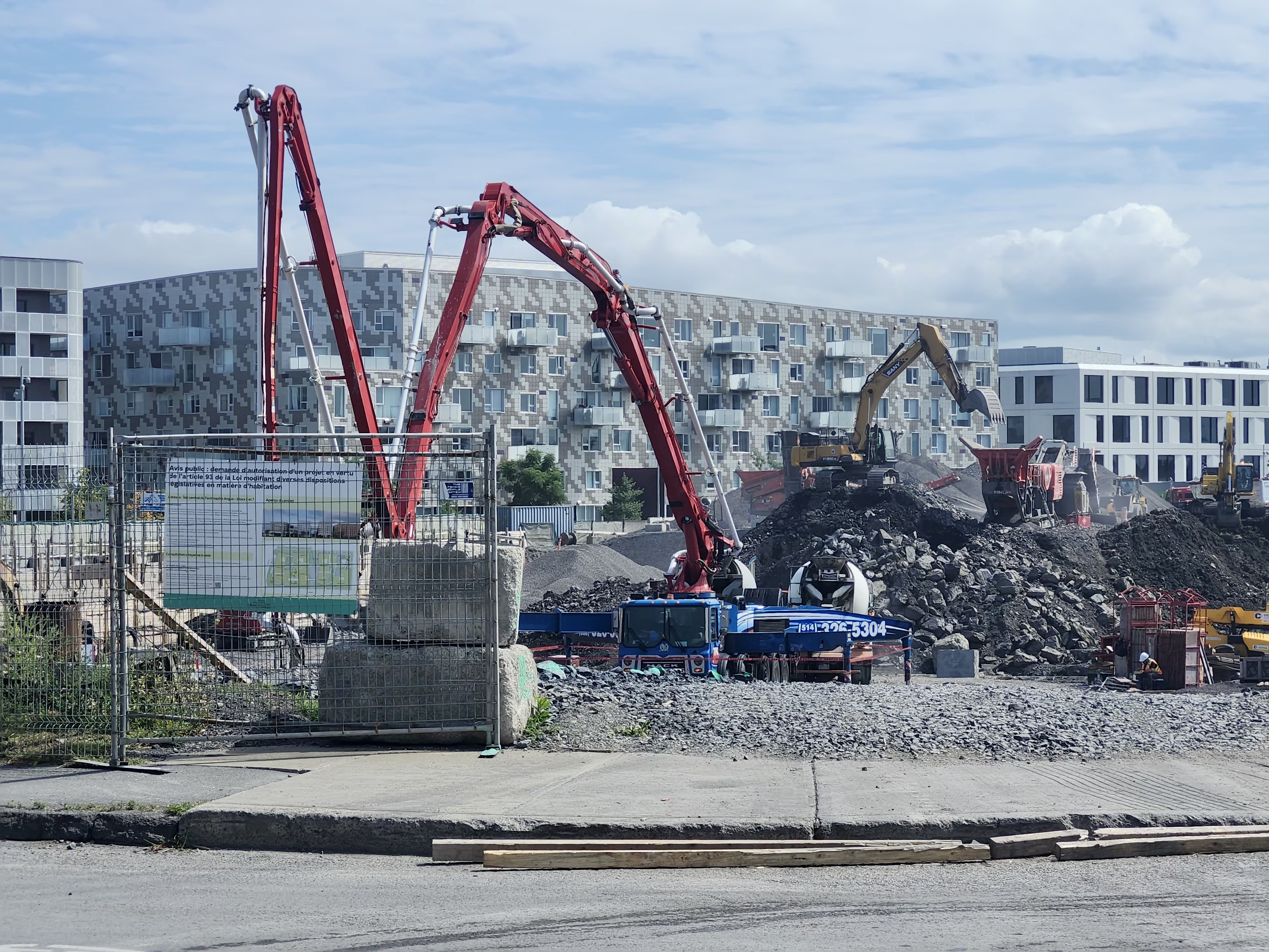 Je tenterai de prendre une photo plus tard, mais on monte la première grue à l’instant. Toujours impressionnant à voir!
