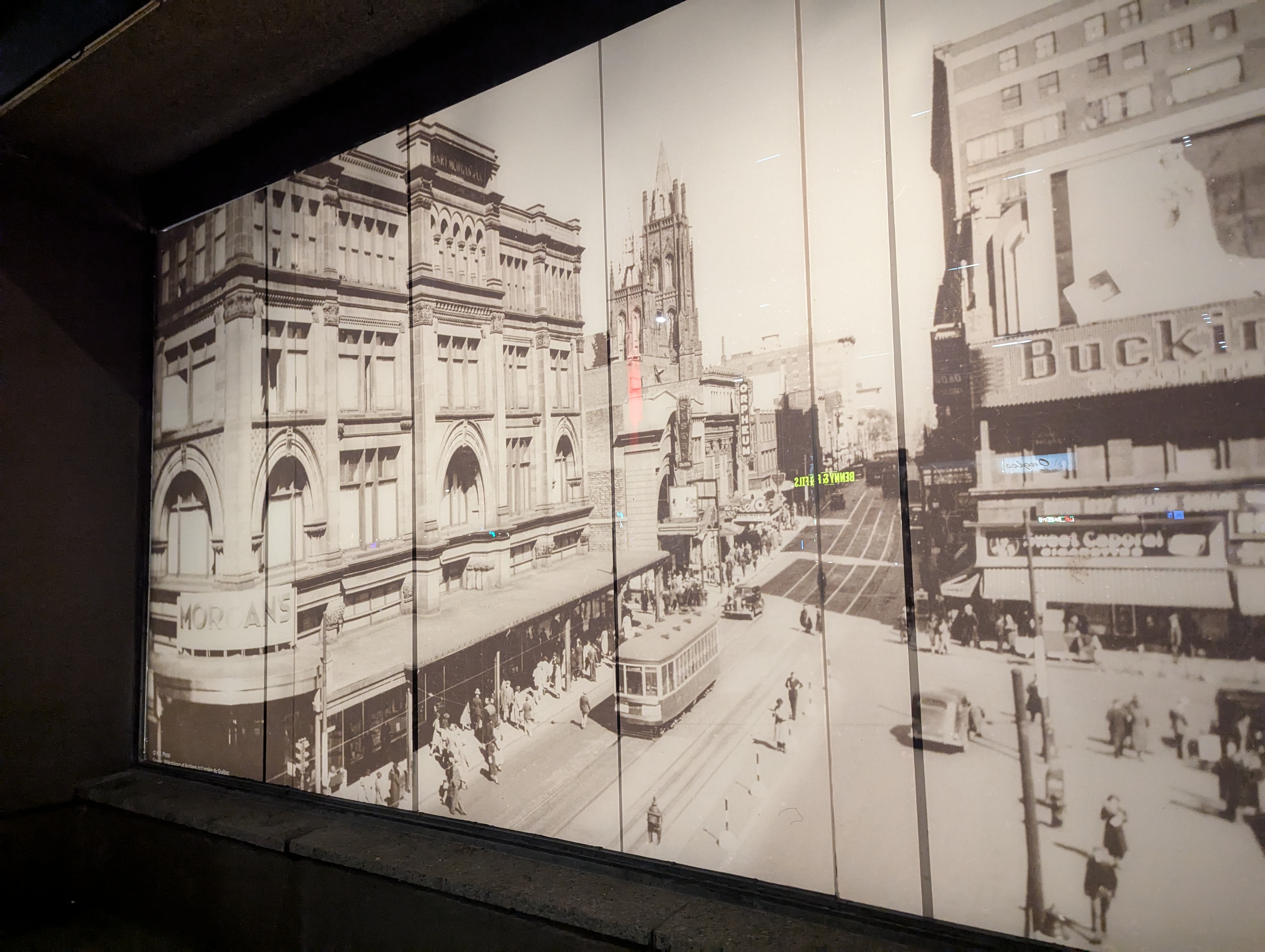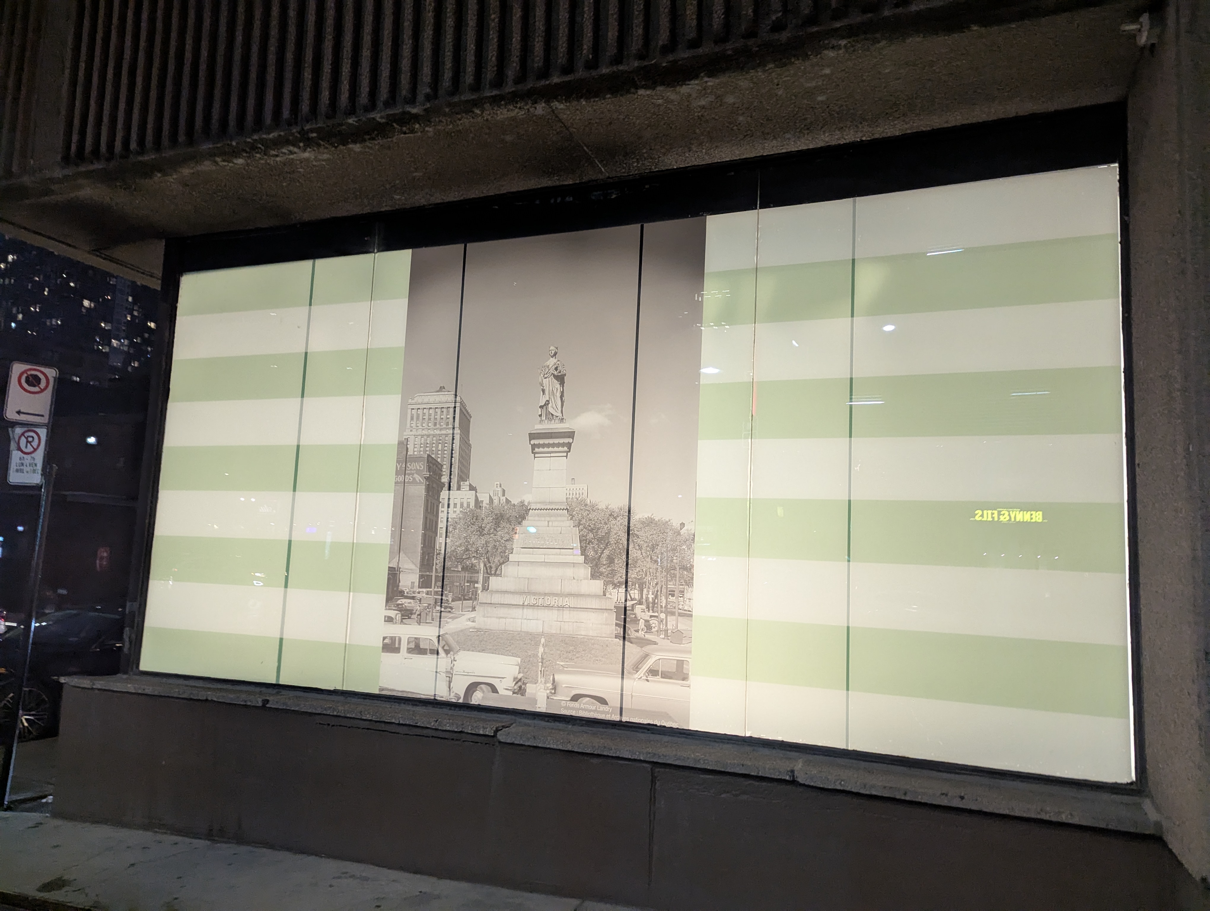 « Grâce au soutien de la Ville de Montréal, le bâtiment emblématique de La Baie - joyau patrimonial du centre-ville - s’est paré d’un habillage inspiré du quartier et de son histoire.