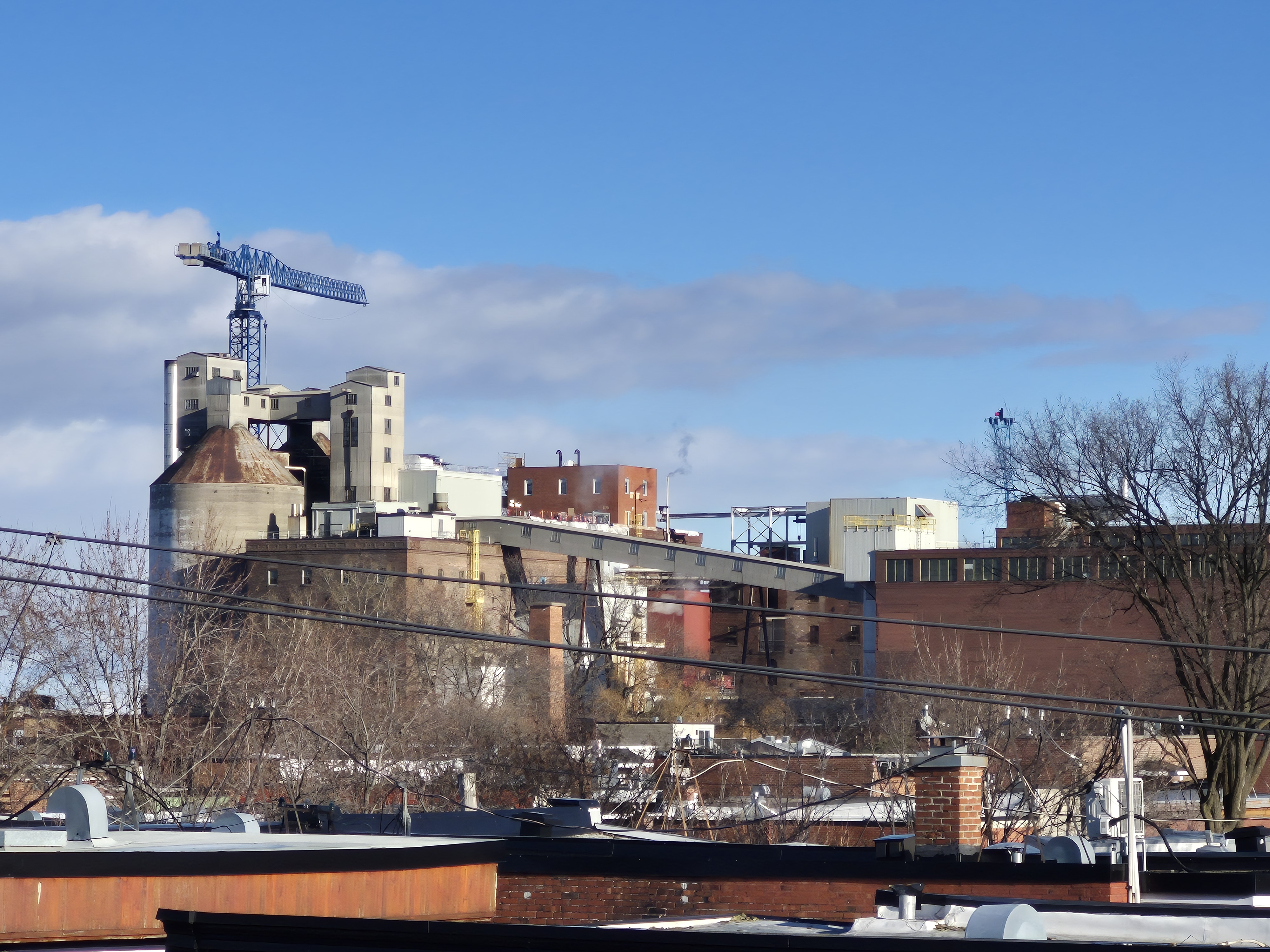 There is a crane up on the grounds of the Lantic sugar factory on Notre-Dame and Pie-IX.