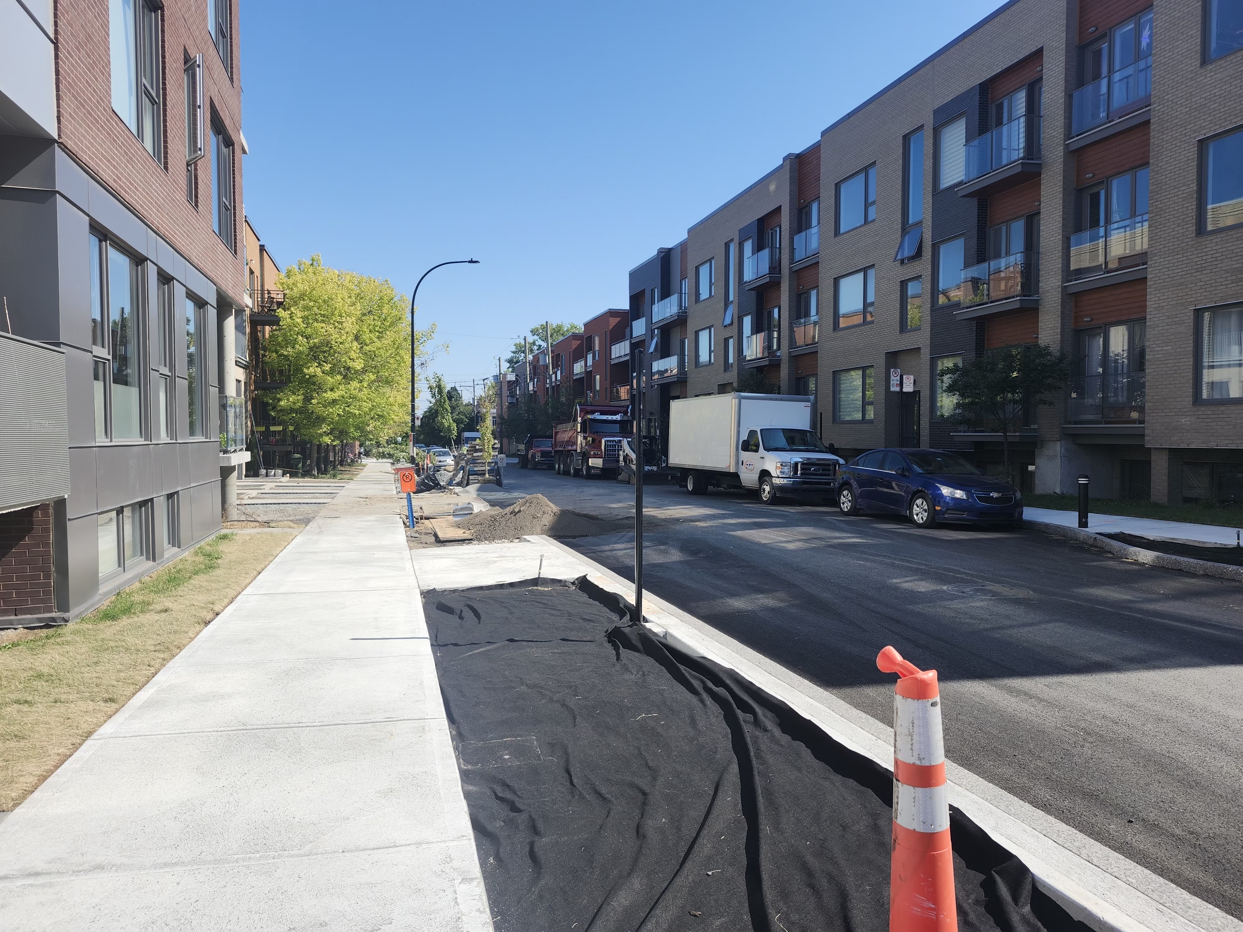 Le revêtement est installé à l’intérieur des balcons. Avec la fermeture de la rue pour des travaux d’infrastructures, je crois que la façade ne va pas beaucoup avancer ces prochaines semaines.