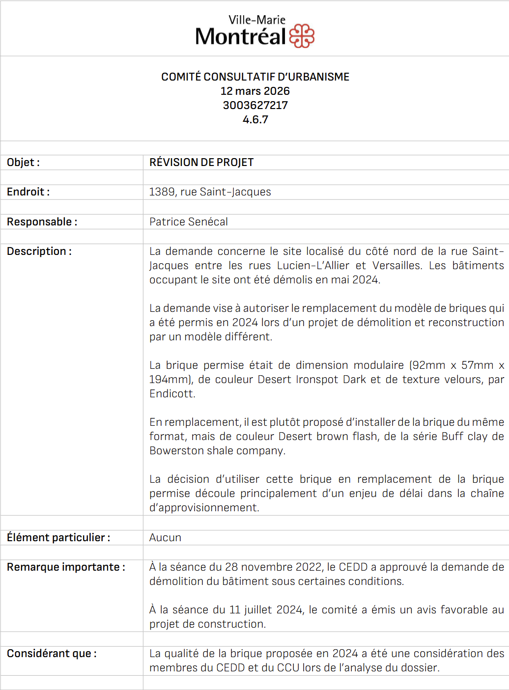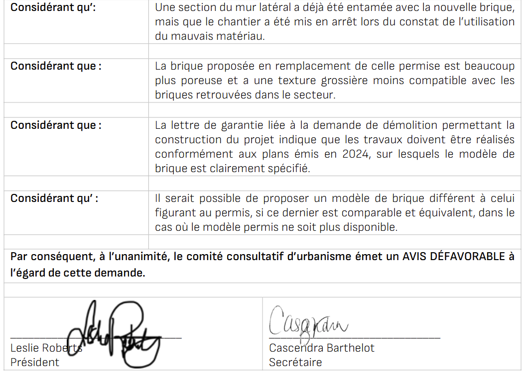 C’est une suite d’une demande de reconstruction de 2024. Enfin, ils veulent changer la brique par rapport à ce qui a été demandé en 2024, mais il y a un avis défavorable du CCU.
