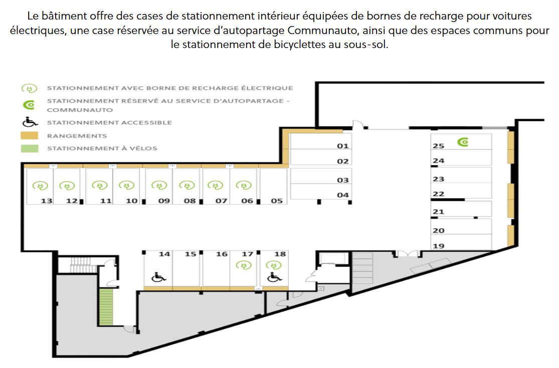 Ceci dit, je m’étonne de voir une place pour une Communauto: je croyais qu’on n’avait pas le droit de la stationner dans un stationnement intérieur privé?