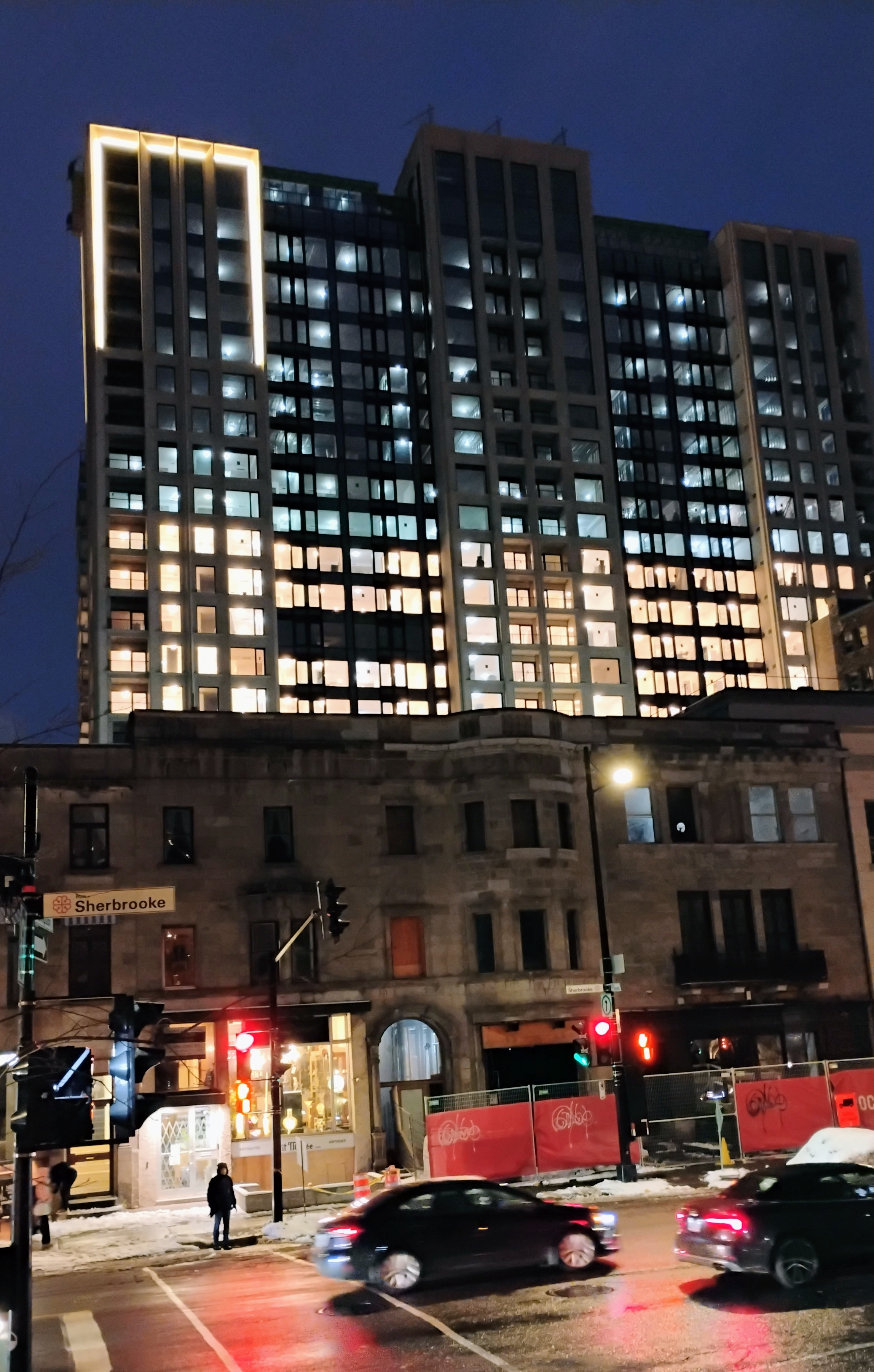 Moi aussi je le trouve réussi, et bien ancré dans son quartier. Ça fait un peu “Magnificient Mile” même (Chicago) et ce serait bon de voir le Golden Square Mile retrouver un peu de son charme et prestige.