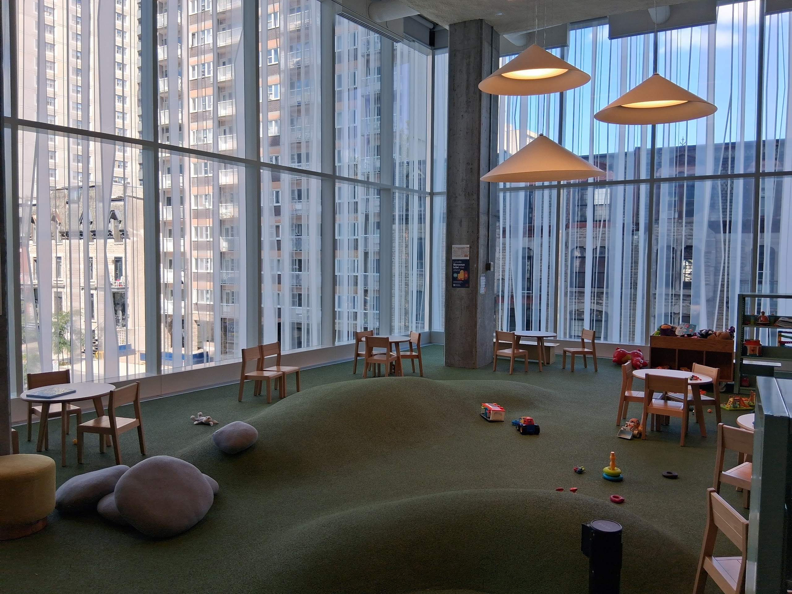 Le nouveau centre Sanaaq et sa bibliothèque. Quel endroit magnifique. Une réussite contemporaine.