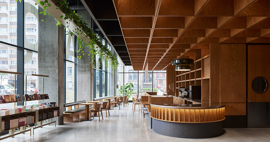 Glasses clink against the bar, the coffee machine hums, and two mothers chat alongside their babies beneath a canopy of hanging vines. Light slides down through fir woodwork, providing the glow of a chic hotel lobby.