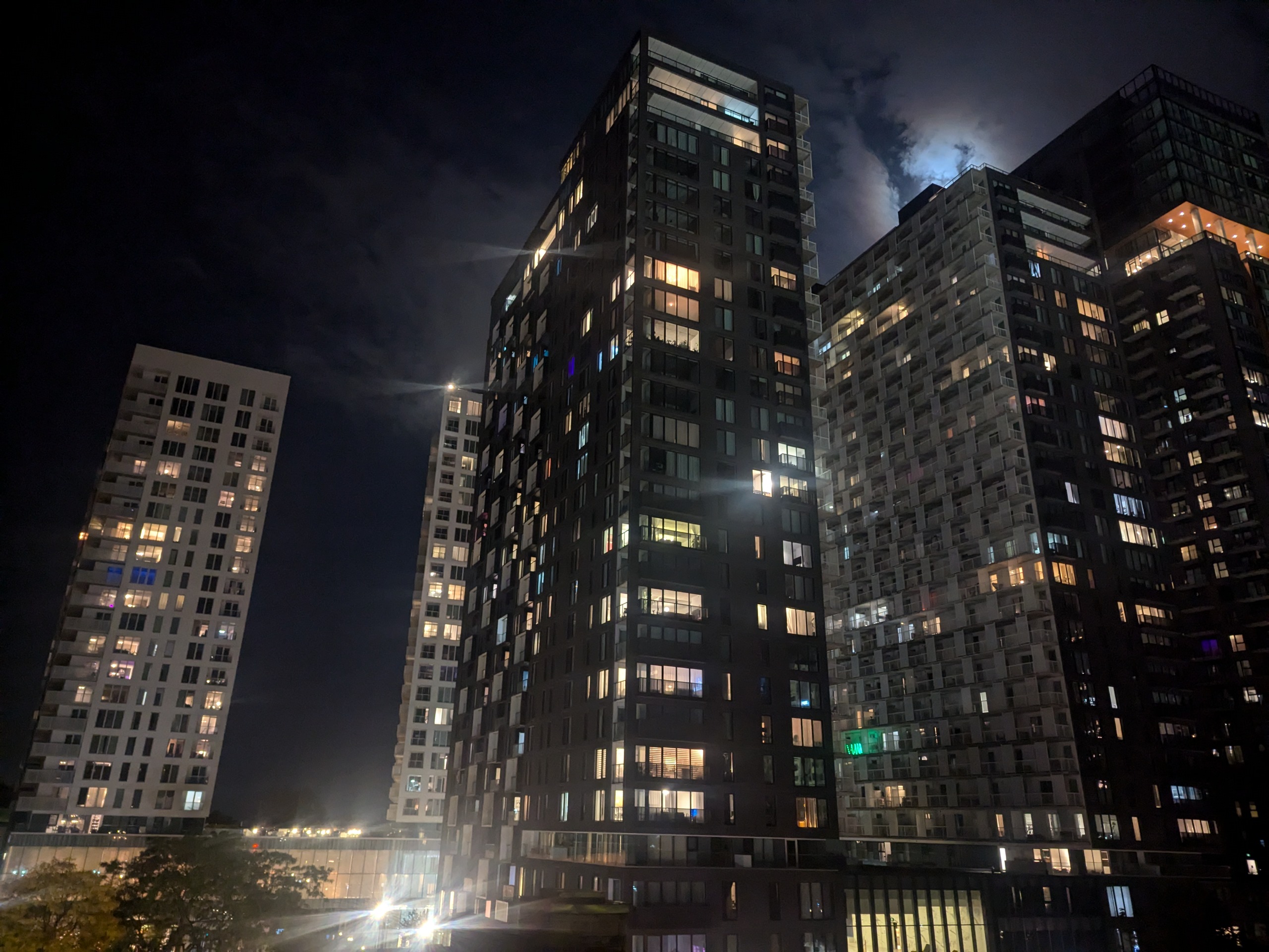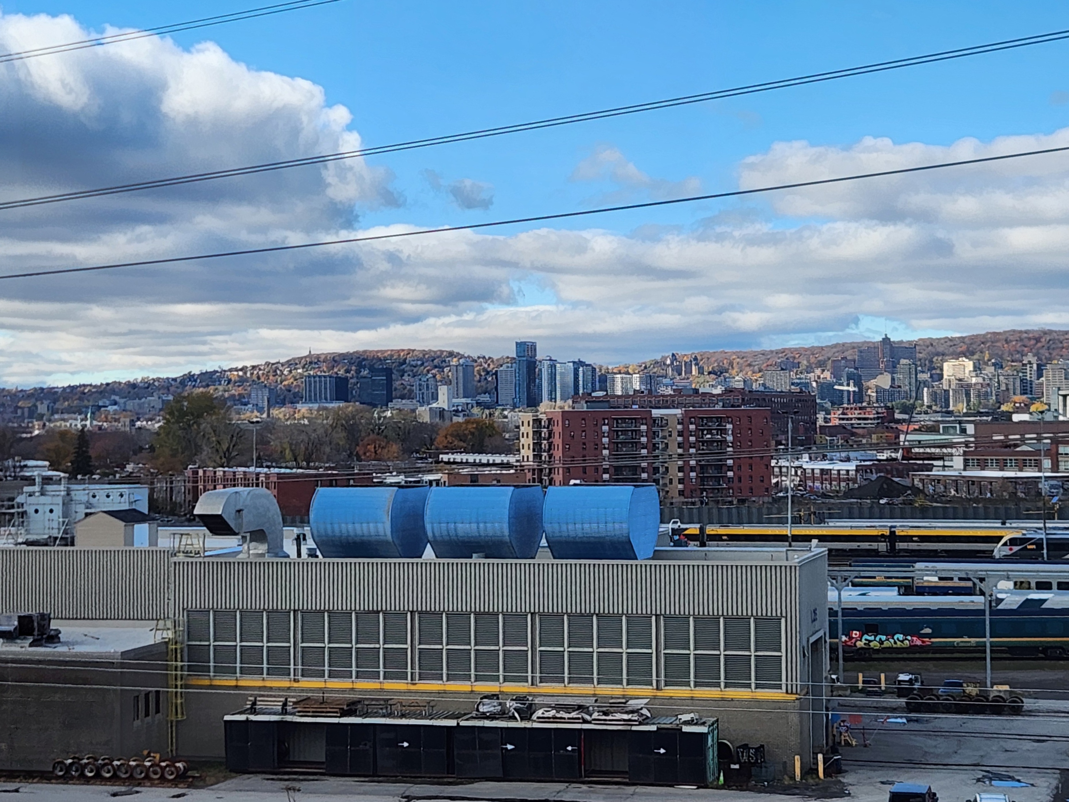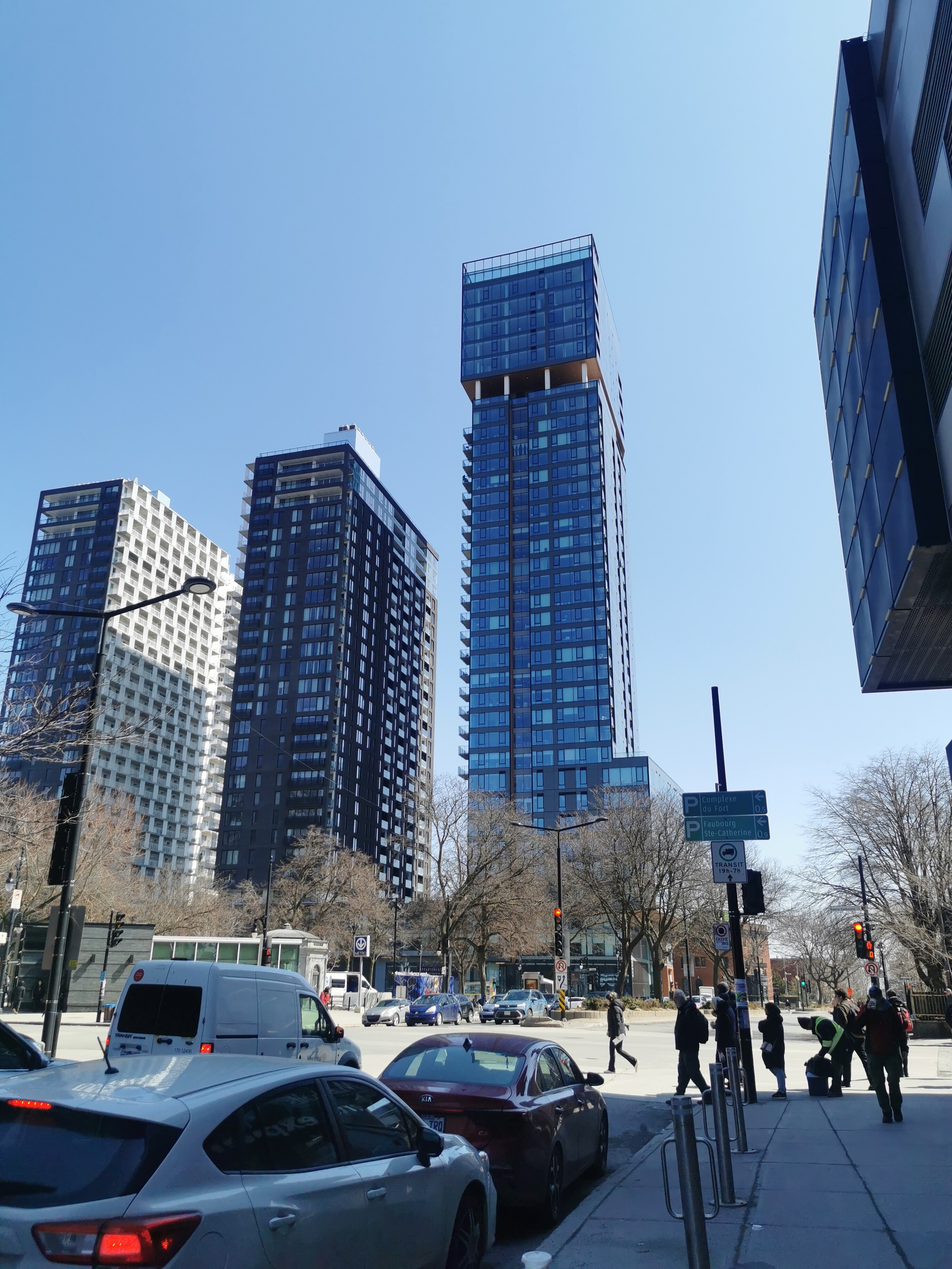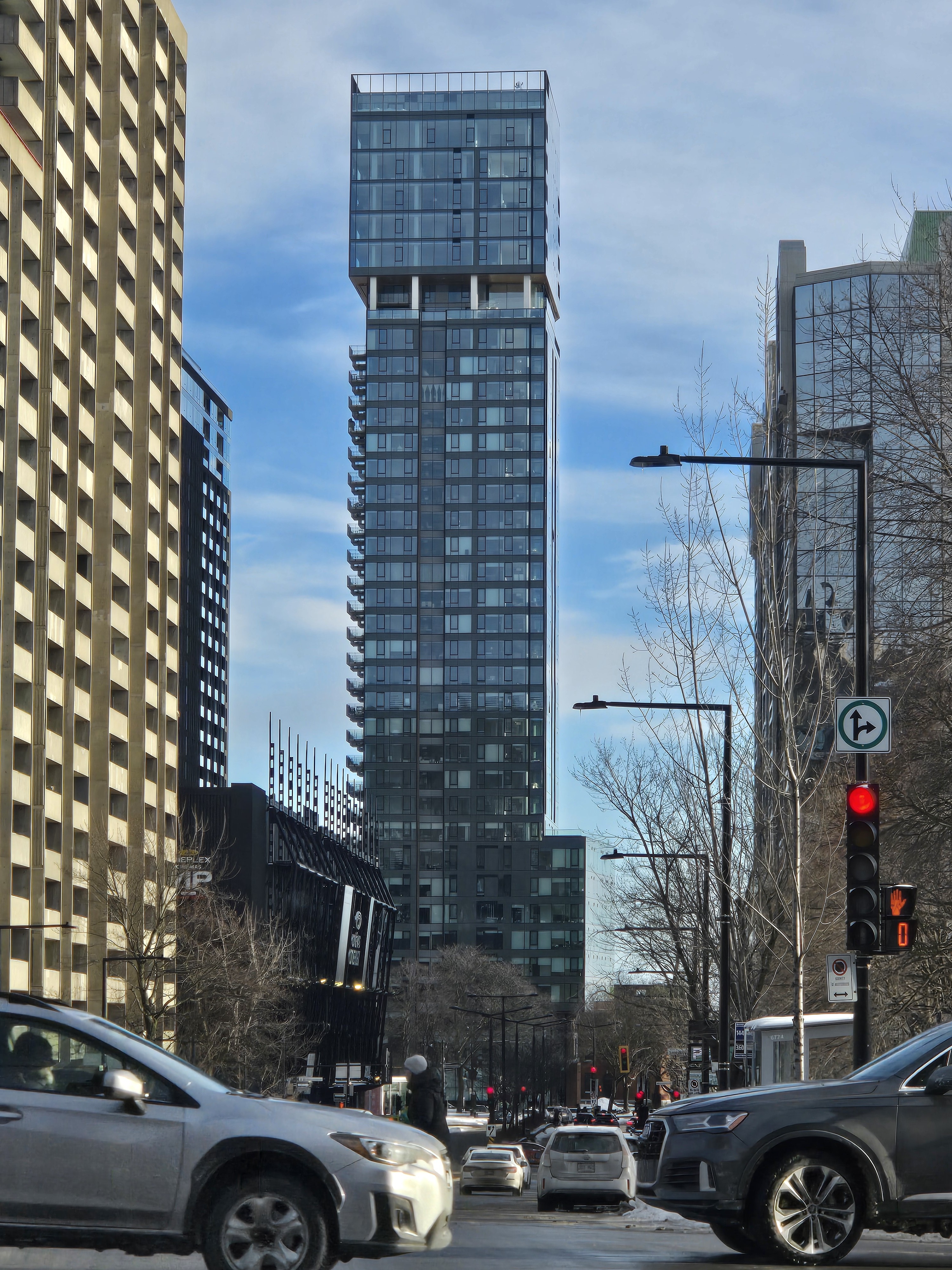 Le Square Children offre un nouveau “cluster” de tours, dont le 1111 Atwater se démarque. Avec le Bois Summit du Mont-Royal, en arrière-plan.