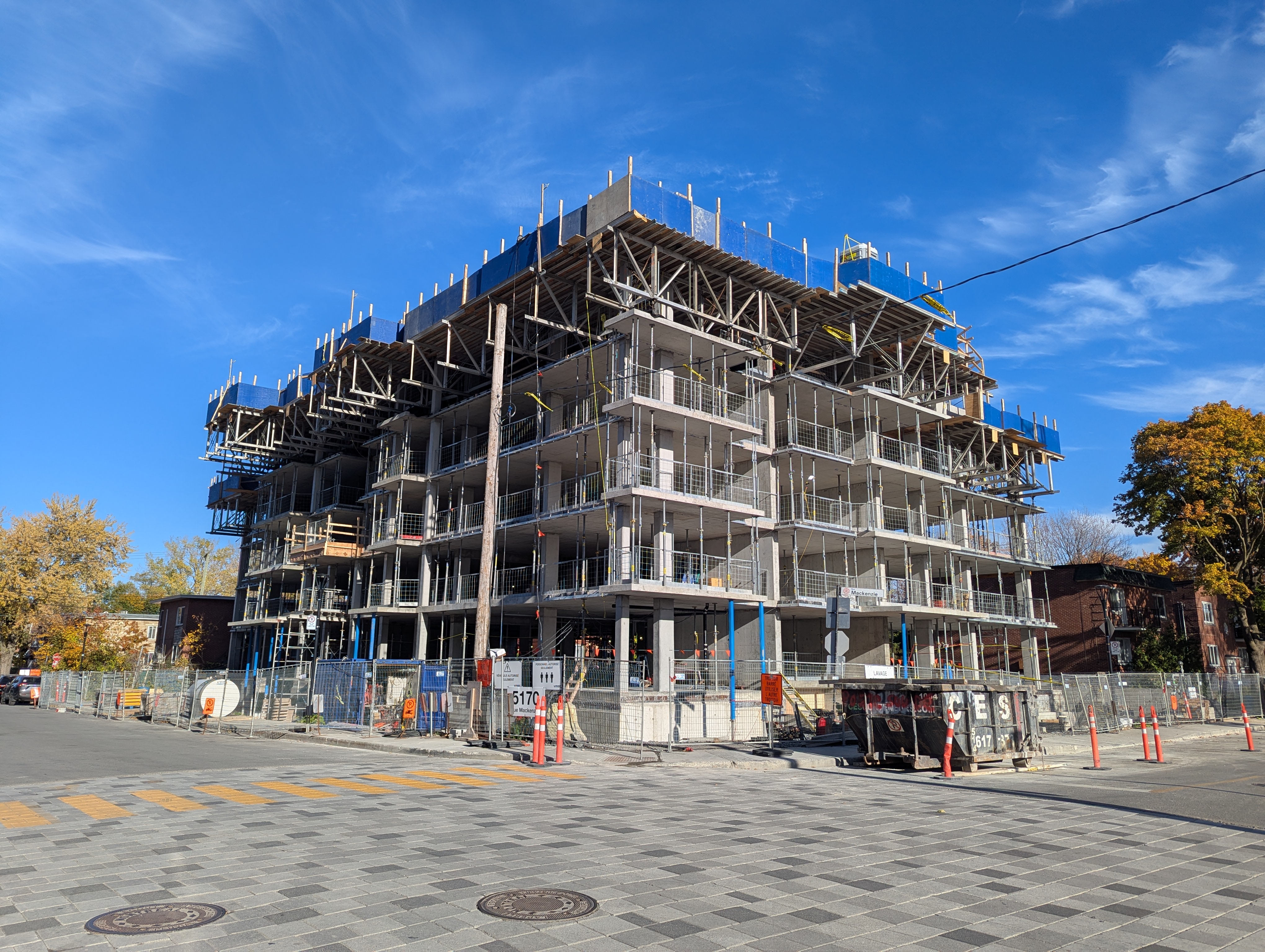 Le premier bâtiment est projeté sur le lot 6 049 218 et portera le numéro civique 5170, rue Mackenzie. La demande de permis 3003133676 prévoit la construction d’un bâtiment de 6 étages, 55 logements, avec 14 unités de stationnement automobiles au sous-sol et 79 unités pour vélos.