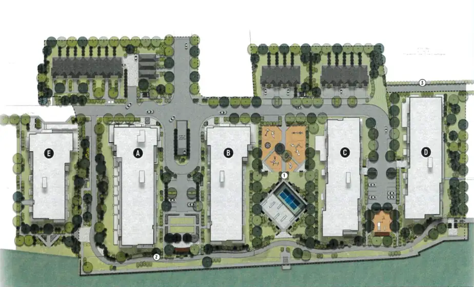 Une vue en plan des cinq tours et des maisons de ville que comptent construire les Espaces Lokalia sur les terrains de la famille Accurso et de deux de ses voisins
