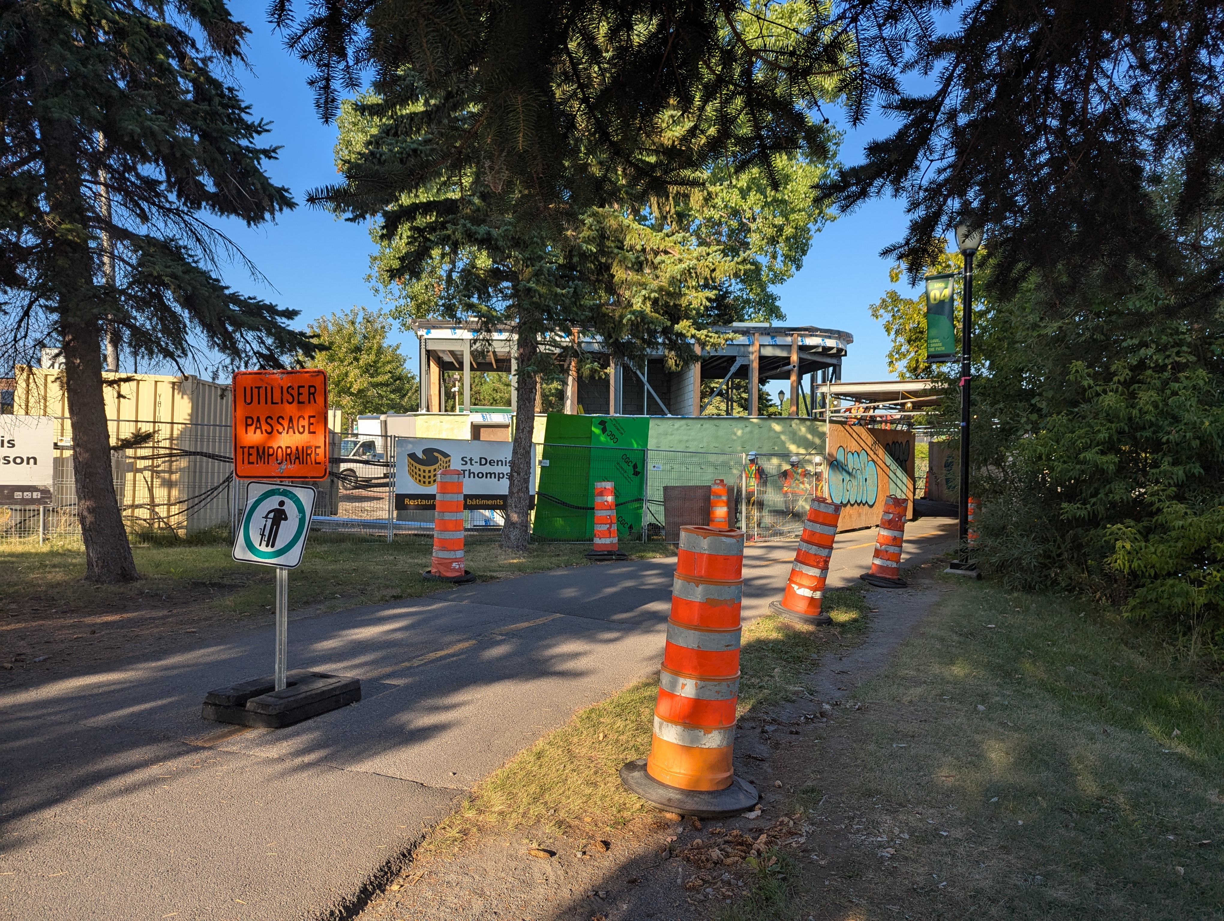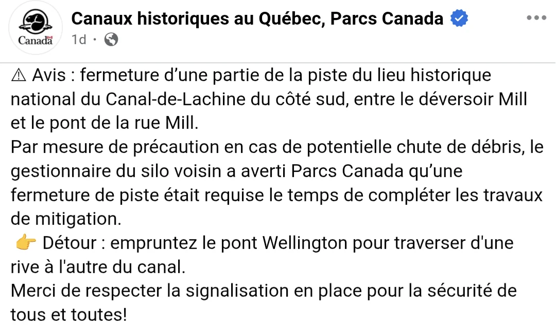 ce n’est pas Parcs Canada qui ferme la piste, mais un chantier de la Ville de Montréal pour la reconstruction de la station de pompage du tunnel Saint-Rémi