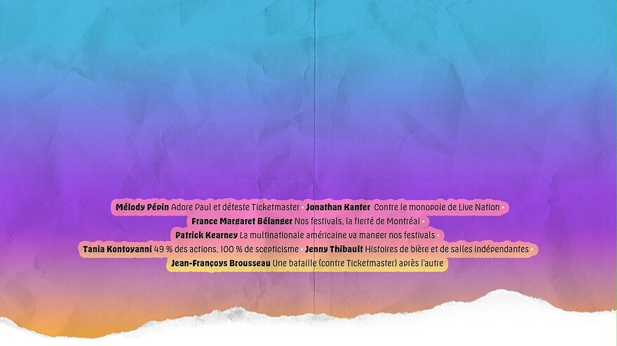 Les doléances des fans de concerts contre Ticketmaster font parfois oublier que ce n’est que la billetterie d’une entreprise beaucoup plus grosse : Live Nation. La multinationale du spectacle, évaluée à 50 milliards de dollars en bourse, est accusée d’avoir instauré un monopole aux États-Unis en étant omniprésente à toutes les étapes des spectacles de musique. Assiste-t-on à la même chose ici depuis que notre géant du divertissement local, evenko, lui appartient à 49 %? Est-ce que Live Nation est en train de reproduire son modèle chez nous, avec notre argent public, aux dépens de notre culture? L’équipe d’Enquête a pris la route des festivals et des salles de spectacles pour le savoir.