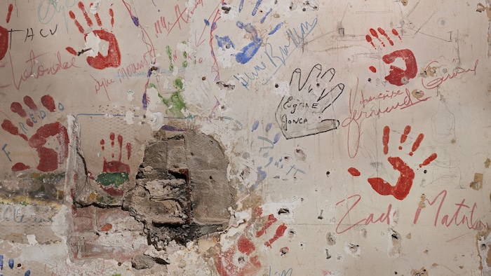 Une partie du mur d’honneur découvert par Alexandre Leduc dans les anciens locaux de Chez Bozo