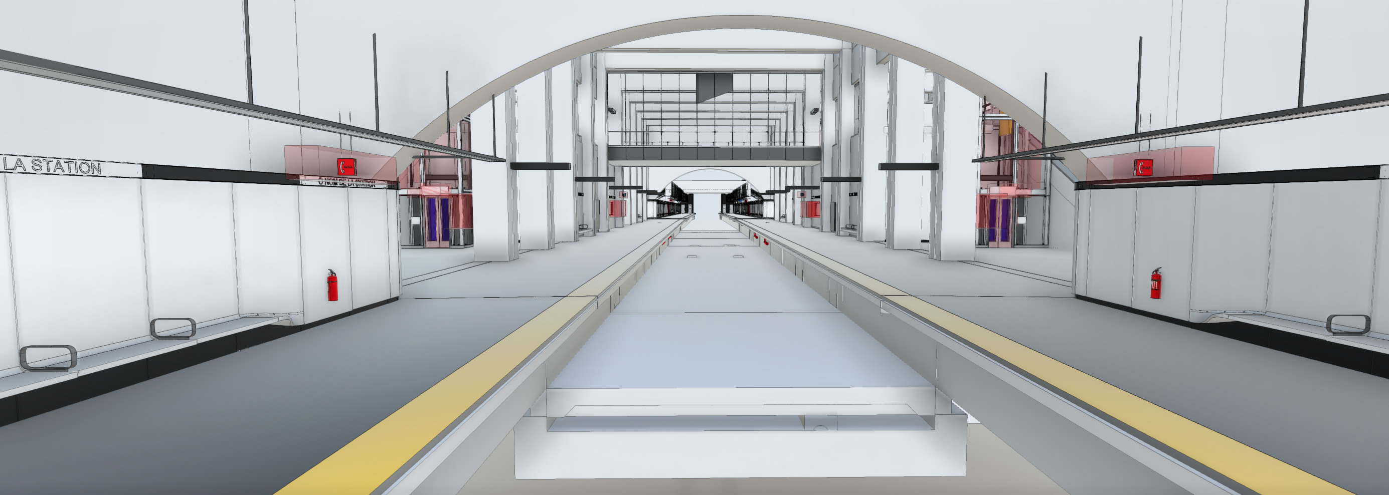 On a un trou qui est le résultat d’une nécessité, celui de monter un tunnelier et d’évacuer les gravats. L’architecture de la station ne fait que profiter du volume excavé, sans plus. C’est pourquoi une partie de la station est creusée en tunnel à la haveuse, car ce n’est pas nécessaire d’avoir plus.