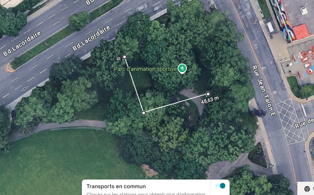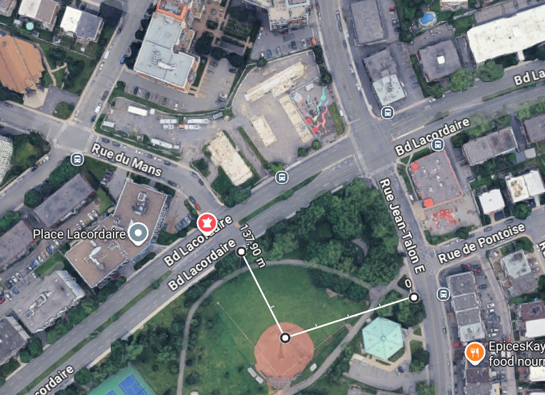 L’édicule de Mont Royal fait 20-22 m x 48 m, tu le mets parallèle à Viau ça rentre, tu peux aussi dans le même souffle réduire la largeur de Viau si vraiment tu as besoin de place.
